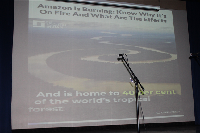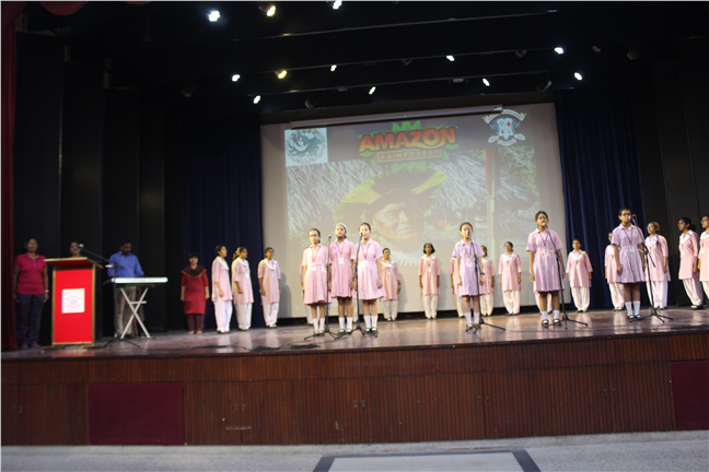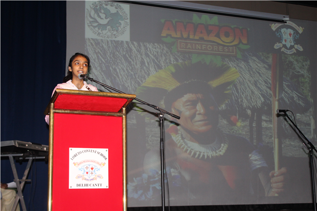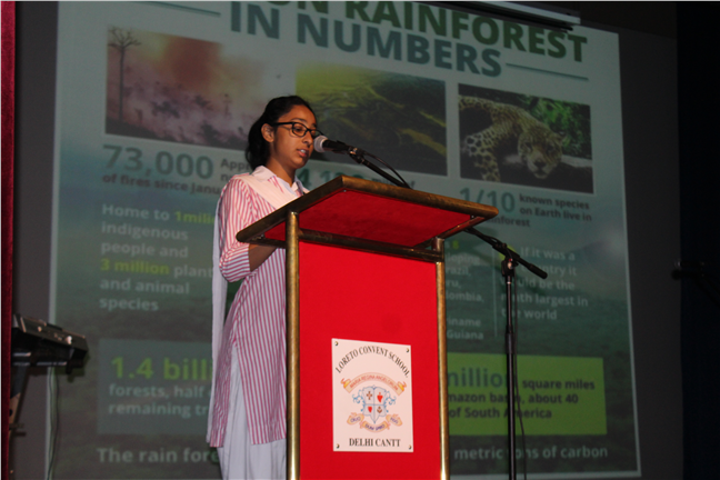 Description: A special assembly was conducted by the JPIC on 13th September, 2019, on the burning issue of the Amazon rainforests. It commenced with the speech by the Principal Sr. Monica, followed by a PPT, video, songs, prayer and reflection. It truly brought out the global concern for this problem, which apparently seems to be difficult to solve.