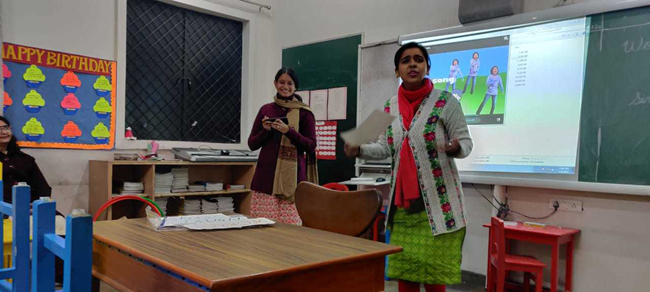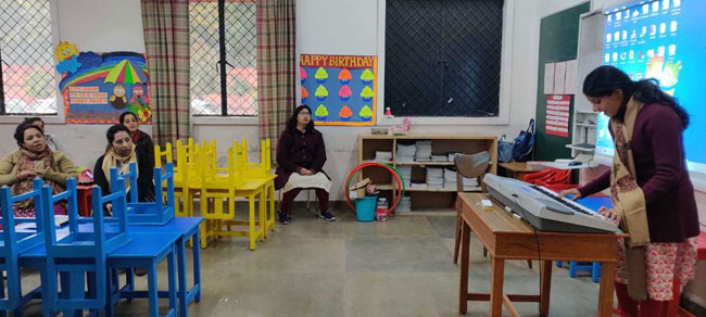 Description: A micro- teaching session was conducted for the junior school teachers at the start of the session after the winter break. It was a demonstration phase by the junior school faculty in which the teachers taught a micro content of a given topic for a short duration.They displayed different ways of introducing a lesson or topic, questioning and explaining, integrating art, music, other activities into their teaching process, blackboard and audio visual aid uses and also managing classroom behaviour. The session concluded with the sharing and feedback by fellow teachers and a reflection on their learning experiences.
