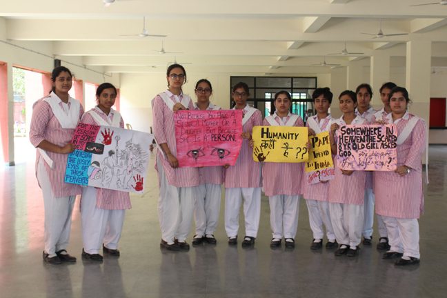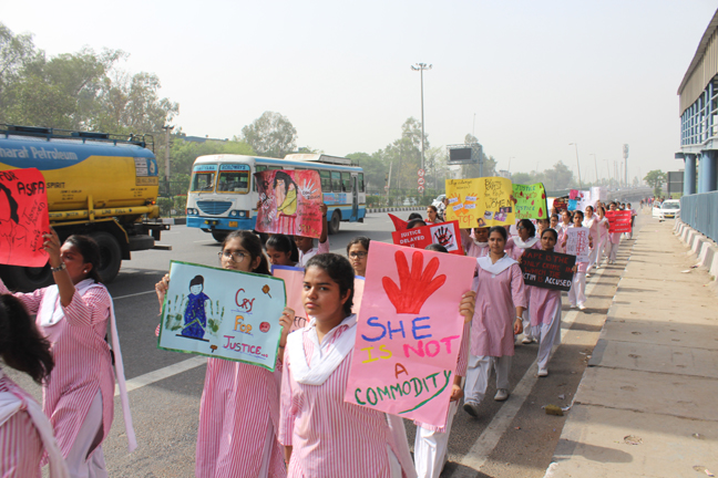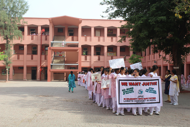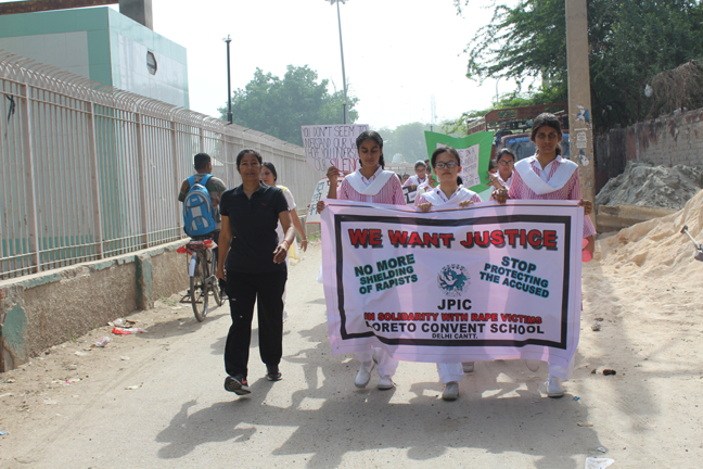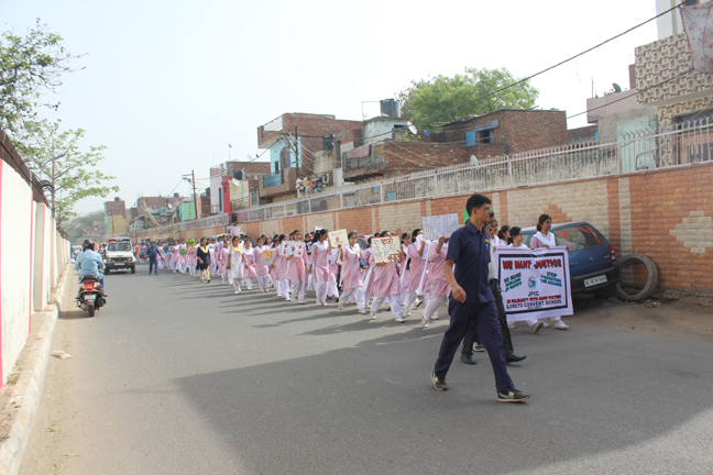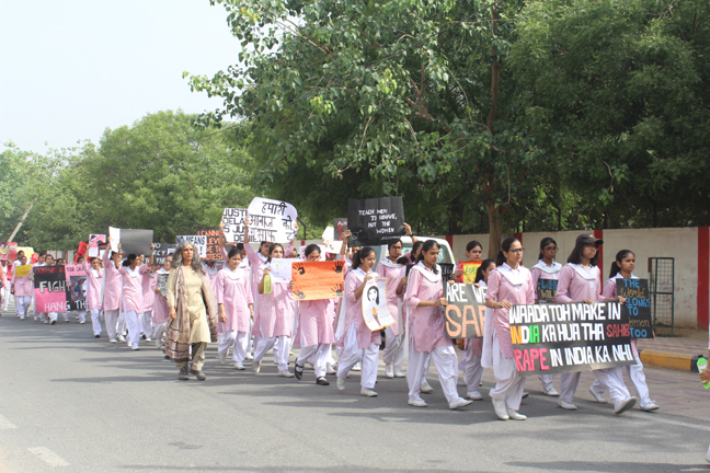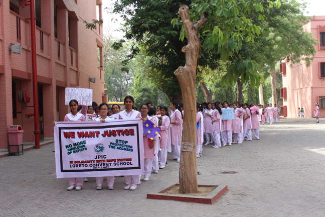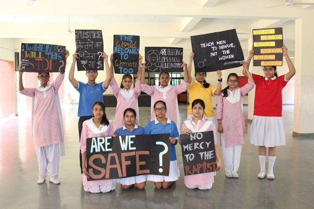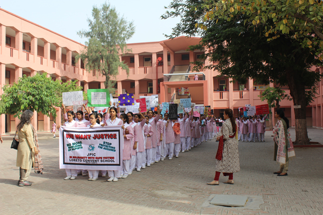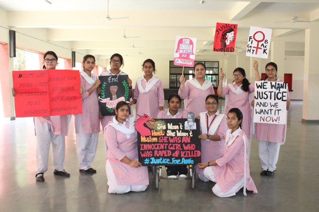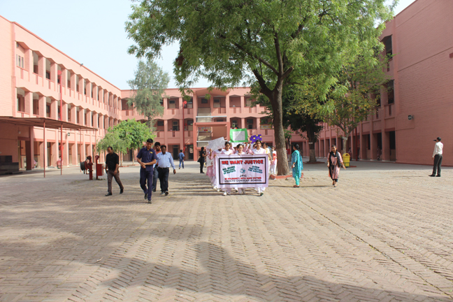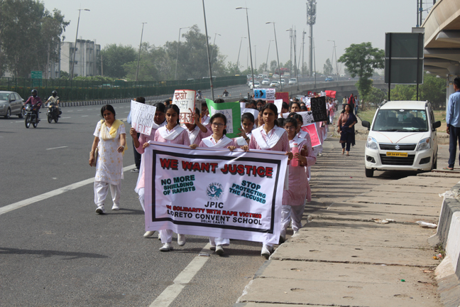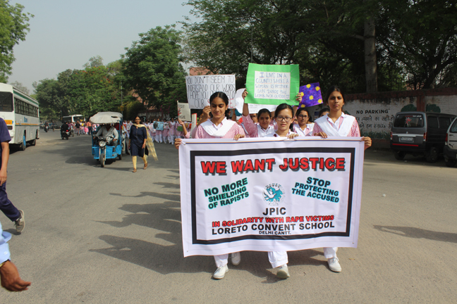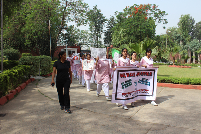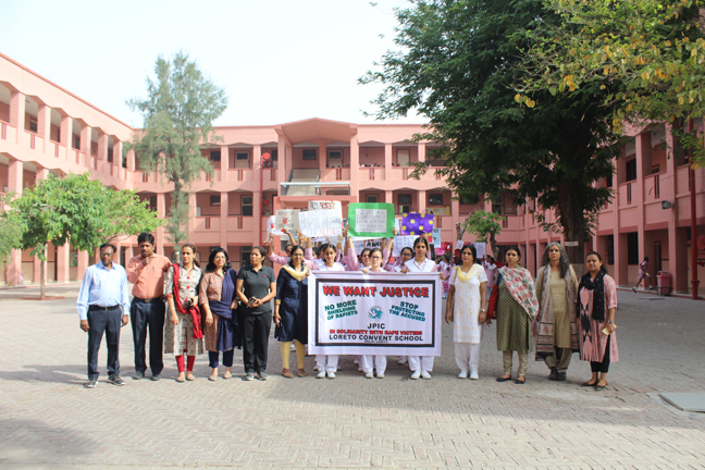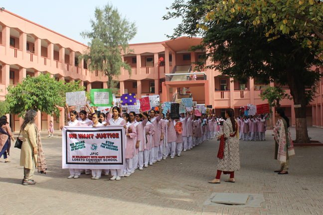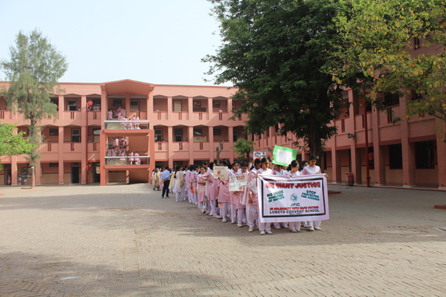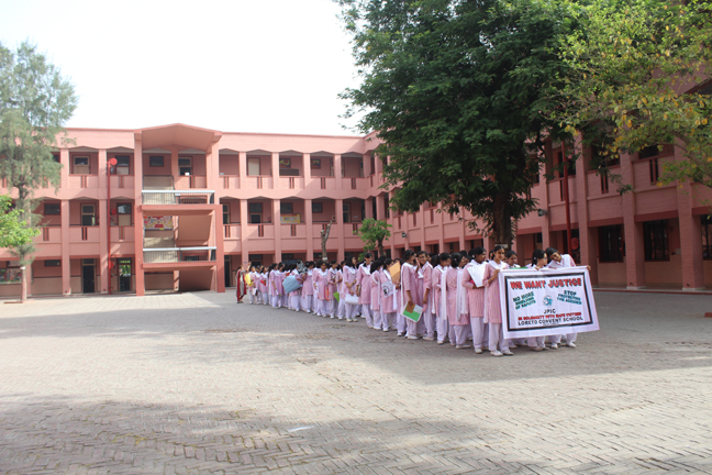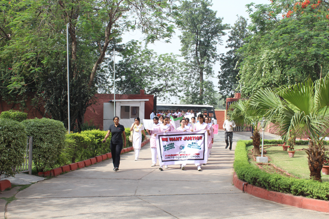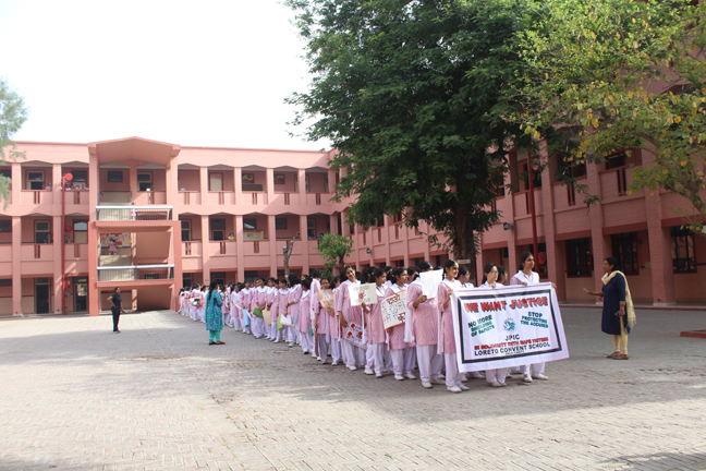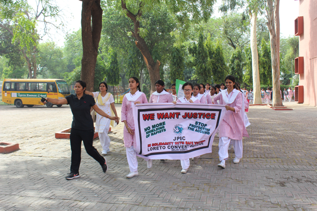 Description: On 19th April 2018, Thursday, under JPIC initiative students of classes 11th and 12th participated in a silent march. The event was aimed to express solidarity for the cause of upholding human rights of women and children in the current social scenario.