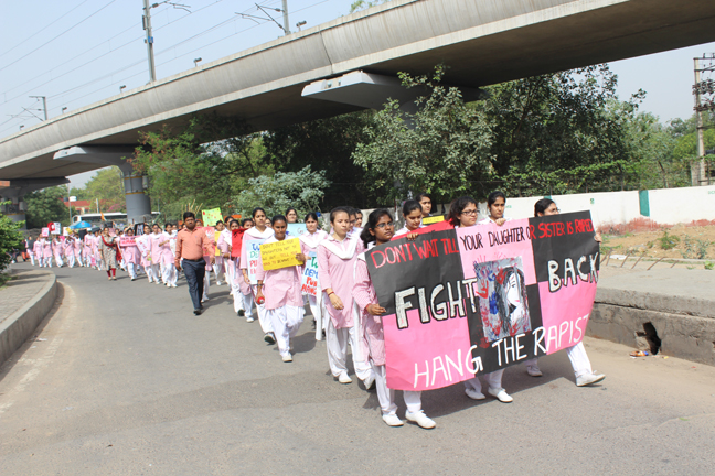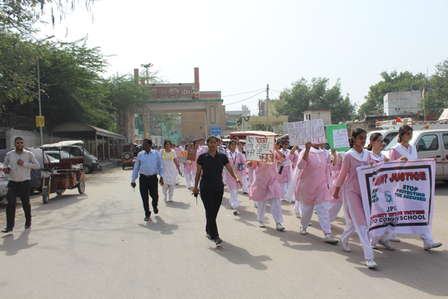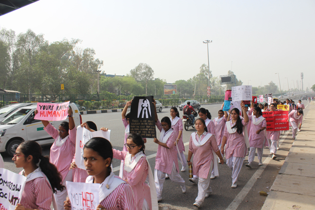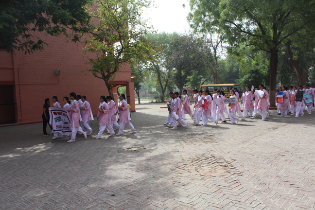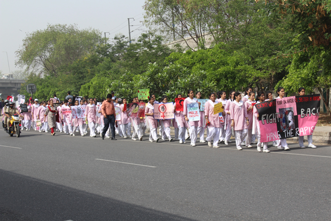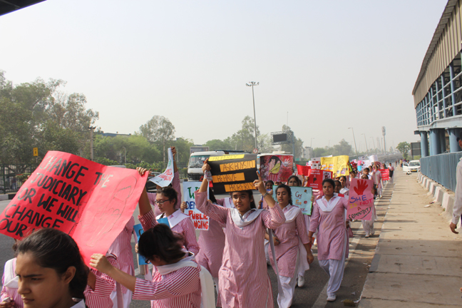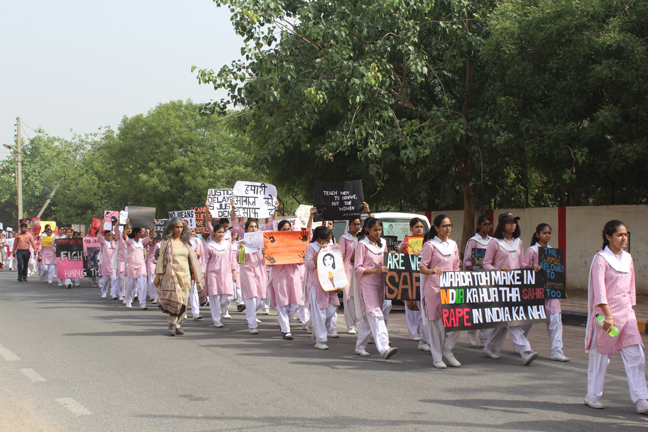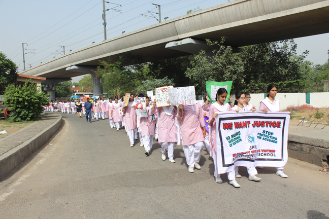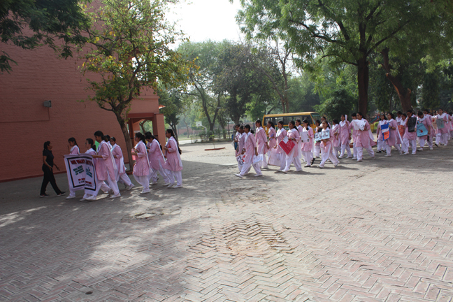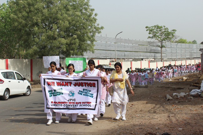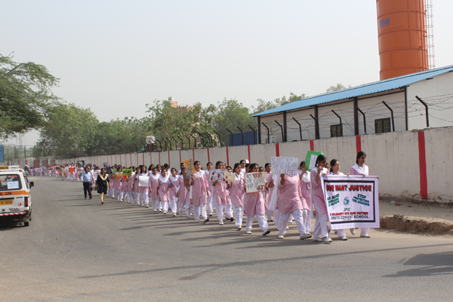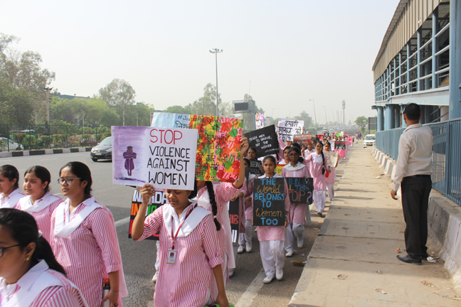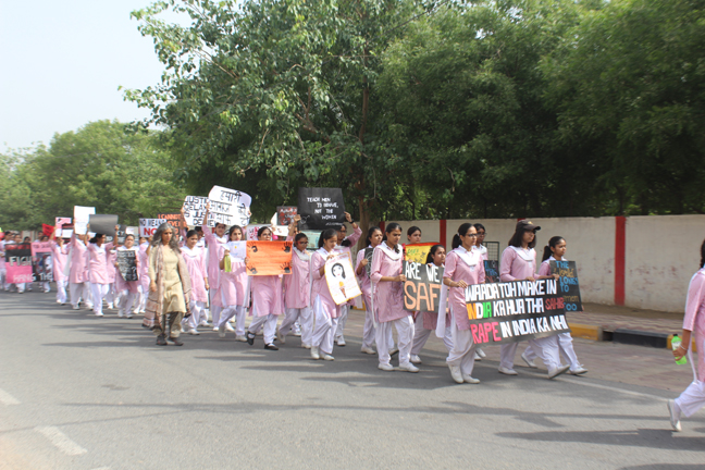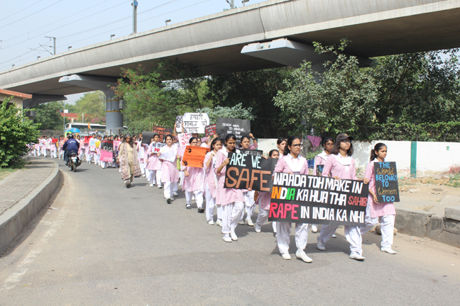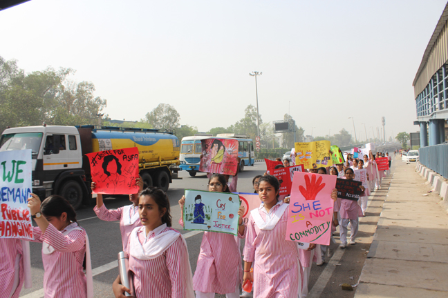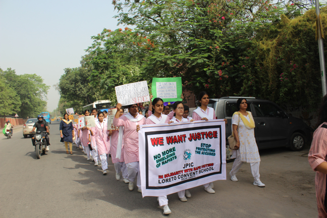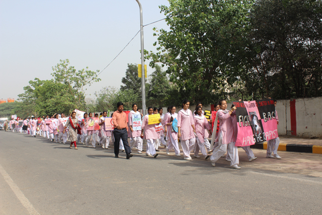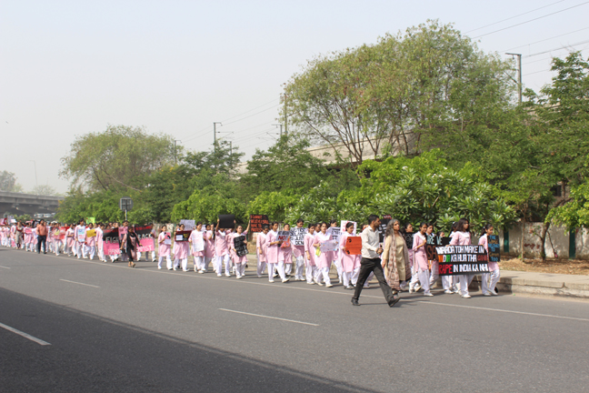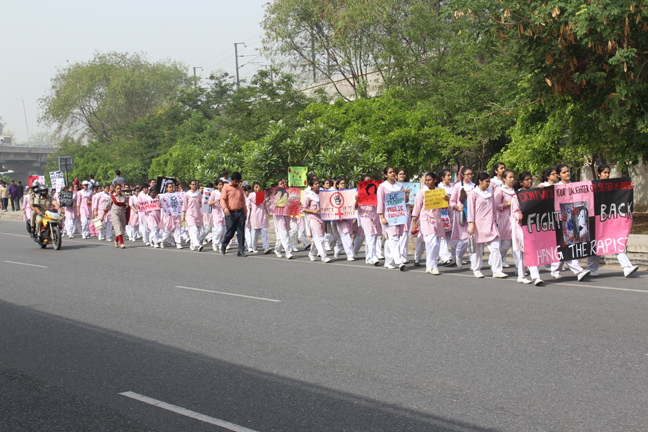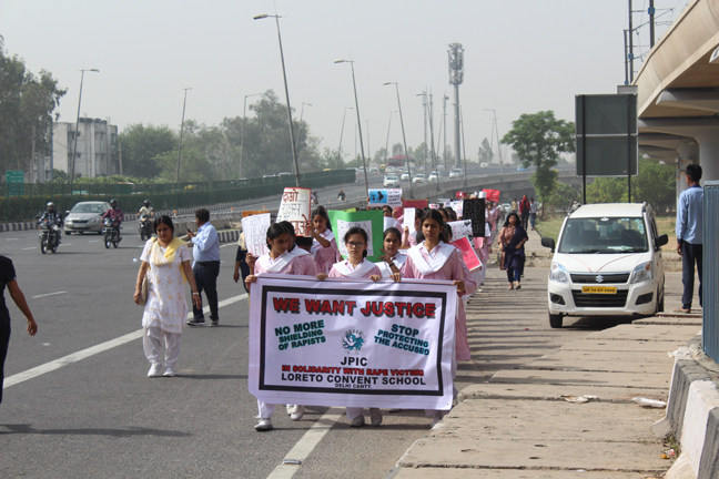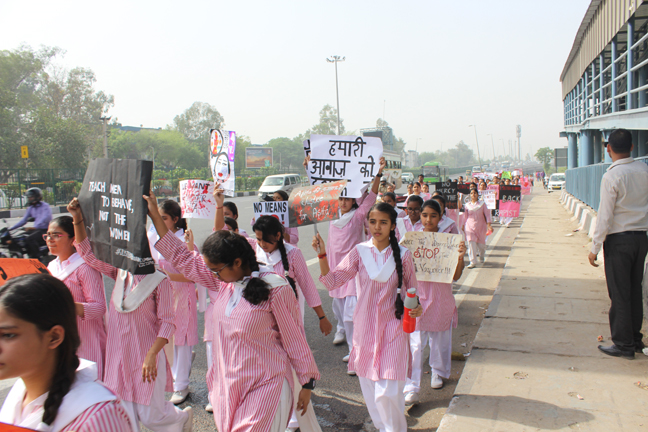 Description: On 19th April 2018, Thursday, under JPIC initiative students of classes 11th and 12th participated in a silent march. The event was aimed to express solidarity for the cause of upholding human rights of women and children in the current social scenario.