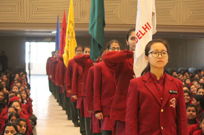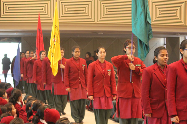 Mrs. Ahluwalia, Mrs. Gautam, Mrs. Kaur, Mrs. Sreedharn & Mrs. Joshi Farewell Assembly.