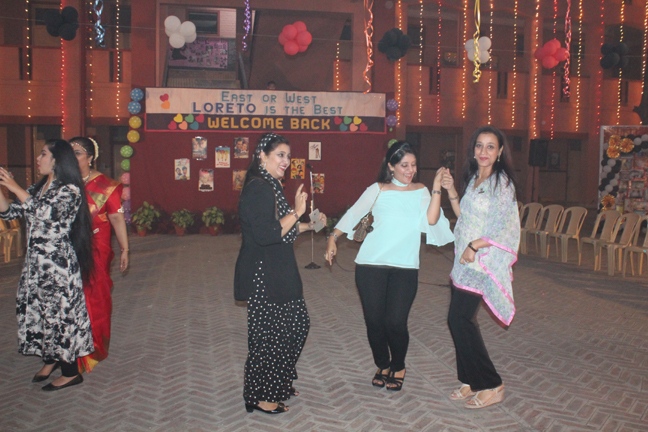 Description: Loreto Alumnae Association organized a reunion meet on 6th November 2016 in the school premises. The president of the association Sr. Mercia addressed the gathering and spoke about the 175 years of Loreto in India. The theme of the evening was Retro-Hollywood/Bollywood. The music by Mr. Ashish and the Décor by “Paint My City Purple” added colour to the theme of the evening. Moreover, Stalls like “Kala Chowk” for ethnic jewellery, “Indian Art House” for home décor and “Lakme” for retro makeover made the event successful.