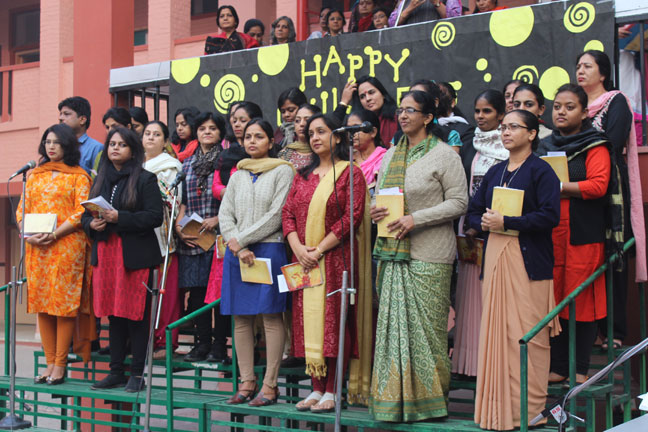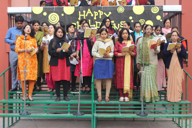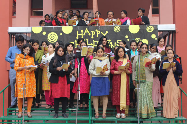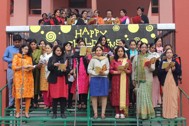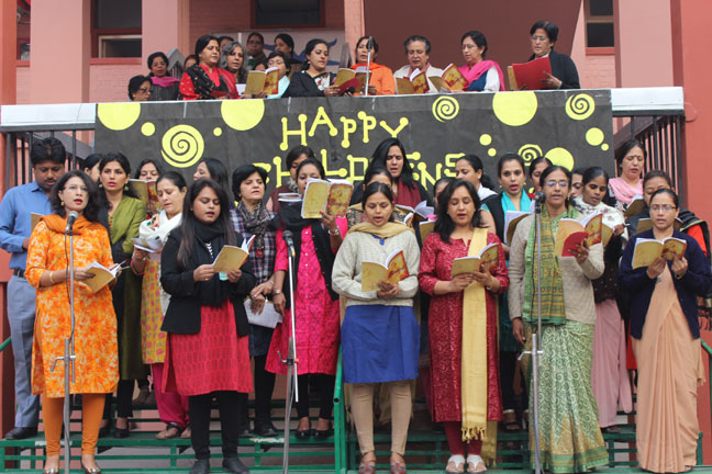 Description: The staff middle and senior sections of Loreto Convent School, Delhi presented a special prayer assembly for its students on 15 Nov 2016, on the occasion of Children's Day on 14 Nov. The readings in the assembly were done by the teachers who also presented the hymns, 'All over the world' and 'What a friend we have in Jesus' to assure students that they can always trust in them and in the Almighty. Following this , the teachers presented a special number, This one's for you, by Zara Larson and David Guetta . The assembly was appreciated by all the students.