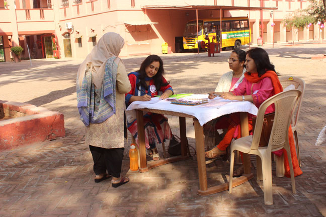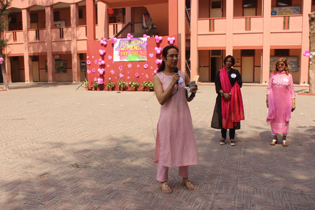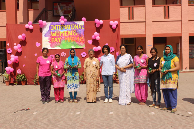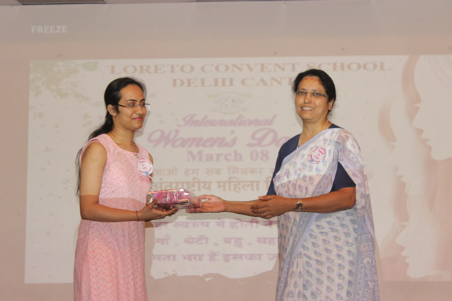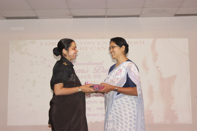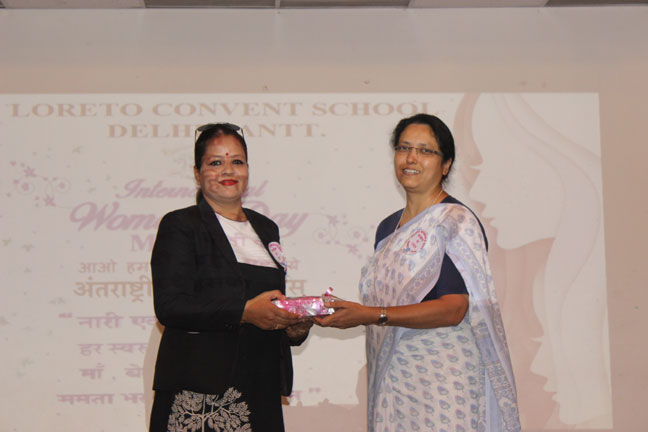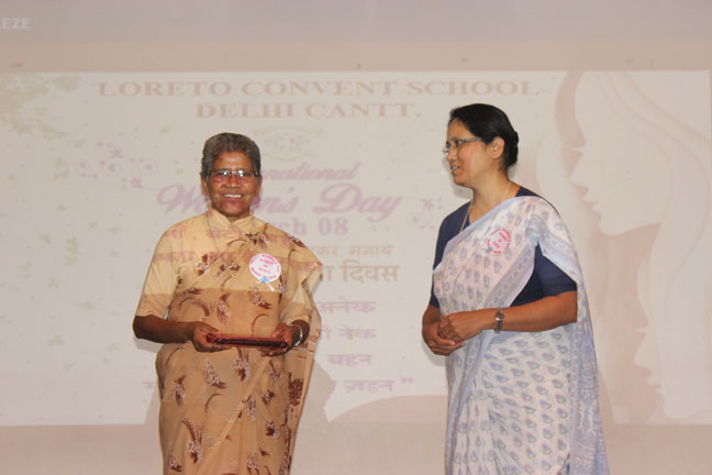 Description: International Women’s Day was organised in Loreto Convent Delhi Cantt., on March 8, 2018 and the ladies from the neighbouring Jharera village were invited to celebrate this day with us. The enthusiastic guests were warmly welcomed by all the teachers and the Principal. Addressing the gathering, Sr. Archana applauded the selfless commitment of those present as anchors of their respective families and effective members of the society. She also felicitated guest speakers and the special invitees of past pupils from Loreto St. Agnes, Major General Sagarika Patiyal, from Loreto Simla, Tara Hall, Dr. Shalya Anand, from Loreto Delhi, Mrs. Saveera Bahl and Ms. Chetna Batra, and Sr. Antoinette Rodrigues the Superior of Loreto Delhi community.
