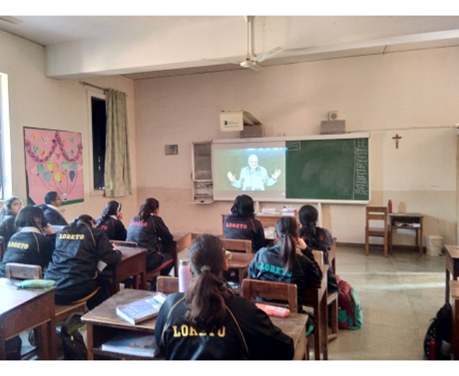 Description: Students of Loreto Convent School from Classes VI to XII witnessed the live streaming of Pariksha pe Charcha session held by our Honorable Prime Minister Mr Narendra Modi at Talktora Stadium ,New Delhi. It was an enriching experience, in which Mr Modi gave students extremely valuable advice on time management and how it can be micro managed. He also advised them to analyze the pressure from the peers and that from the parents and take both in a positive way. The prime Minister also gave them insight into how ‘Hard Work ‘and ‘Smart work ‘go hand in hand and then suggested them to do hard work smartly. Students expressed their gratitude towards the prime minister for such a motivating and inspiring session.