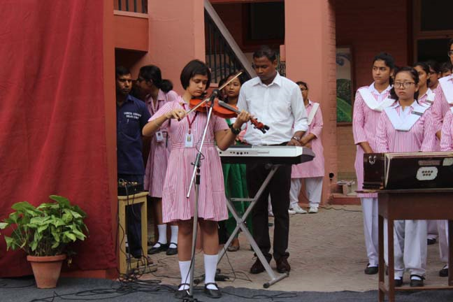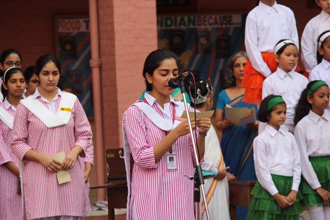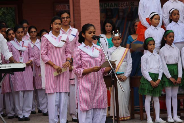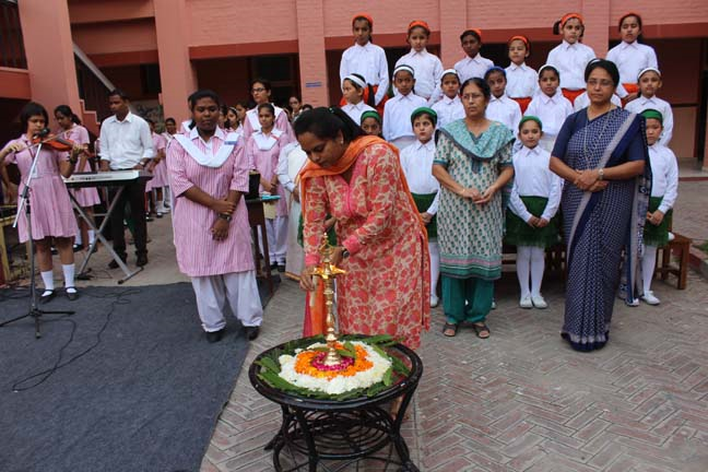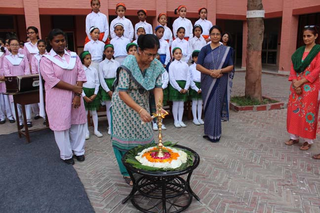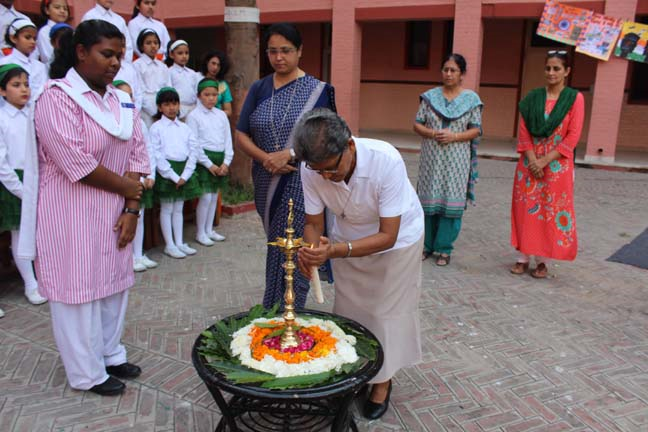 Description: Loreto Convent School, Delhi Cantt, conducted a special prayer assembly on the eve of the Independence Day on 14 Aug 2014. This prayer for the nation was conducted by the LTS Club of the school. The prayer service commenced with the lighting of the lamp to a special rendition of the national song ‘VandeMataram’. The ceremonial lamp was lit by the new principal Sr. Archana Gomez, the coordinators and the head girl of the school. The Student Council, which is an inherent part of the LTS Club conducted the assembly which was followed by the presentation of a special patriotic hymn, ‘I VOW TO THEE MY COUNTRY’ prepared specially for the occasion. After a presentation by the Junior school, the principal addressed the students and encouraged them to dedicate their service to their nation. The prayer service ended with the singing of the national anthem.