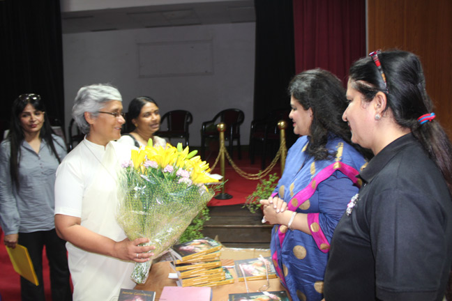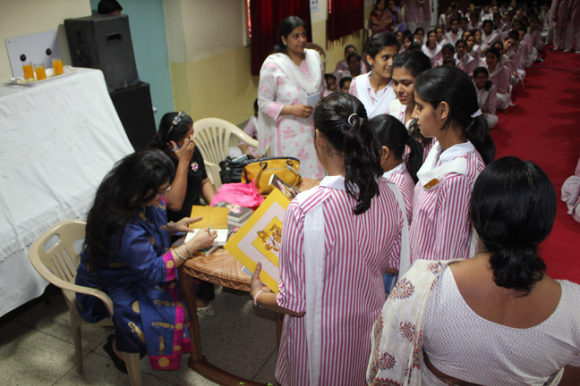 Description: Today Ms. Nelofar Currimbhoy, daughter of Shahnaz Hussain visited Loreto Convent, Delhi to promote her book ‘FLAME’ “The story of my mother”. This book contains the biography of her mother's journey from childhood, adolescence, charmed years of her early married life, the years of struggle as an entrepreneur, and her family life.