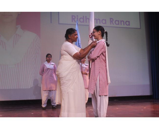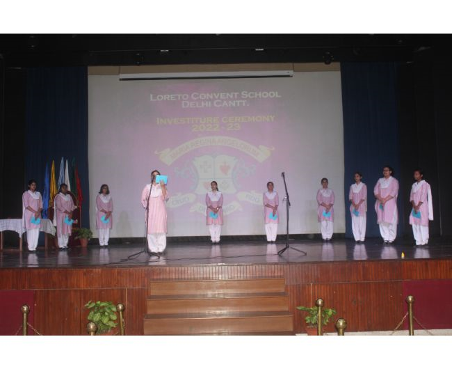 Description: On 28th July 2022, Loreto Convent School, Delhi formed its Student Council Body for the session 2022-23 at the Investiture Ceremony held in Mary Ward Auditorium. The Investiture Ceremony is one of the momentous occasions when the school entrusts hope, faith, and the mantle of responsibility to the newly appointed student council. These young leaders were elected through a democratic process. First, the students of classes XI and XII self-nominated themselves for various portfolios. The best of the self-nominated students was then selected by the teachers. This was followed by an online election held on 23rd July 2022. Students of classes IX-XII voted for their preferred candidates. The solemn ceremony was graced by our Principal, Sister Monica, and Senior School Coordinator. The ceremony began with the auspicious lighting of the lamp by Sister Monica and coordinators and a solemn prayer to invoke the almighty’s blessings. Students and teachers offered their prayers to the Lord to seek his blessings and direct the student leaders towards strength, zeal, and the path of righteousness, integrity, and commitment. The solemn rendition of the hymn “Be not dismayed.” praised the Lord Almighty and built hopes in our minds about his innate power to take care of each one of us. Our Principal, Sister Monica Rozario, graciously pinned the badges on the Student Council members and congratulated them for deserving this very important role. It was inspiring to see the student leaders march confidently to take their positions on the stage. Being a Student Council of Loreto Convent is a privilege. So, a motivational video was presented to depict the expected leadership qualities from the newly elected council. The young leaders pledged their commitment with sincerity by donning their respective badges of duties. The newly elected members then took their oath of commitment, to be impartial and honest in discharging their duties and to uphold the values which mark the ethos of the school. Last but not least was the inspiring speech by the Head Girl, Meryl Teressa Anthony, who shared her memorable journey of thirteen golden years of her life behind the pink walls of Loreto Delhi. She expressed her gratitude towards the past Principals, teachers, and School management who have significantly contributed to her holistic development. Sister Monica, in her aspiring speech, focused on the need to empower many more leaders by being goal-oriented. She inspired them to be empathetic, value collaboration and hone interpersonal skills and lead a real life that can positively impact the community. The council was also encouraged to walk on the path of righteousness, integrity, and commitment. Inspired by Sister’s speech, the student gathering applauded the new cabinet members and promised to work along with their new leaders. The zeal of the council was reflected in their confidence and dedication to execute their work. The ceremony concluded with the Loreto Chorus. The program was a memorable occasion for the young leaders as they looked forward to a new and enriching academic session.