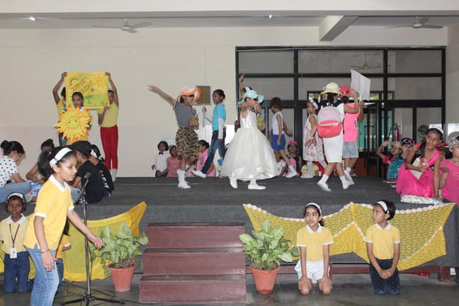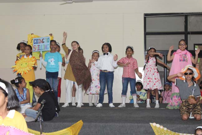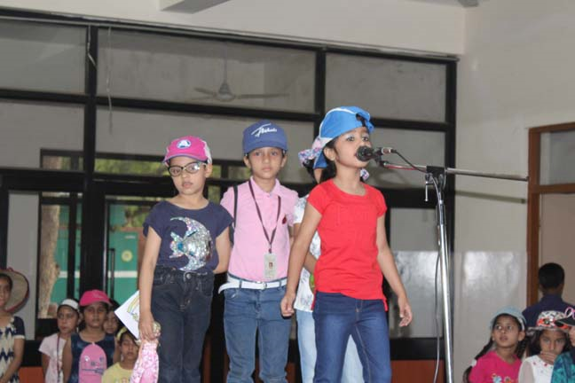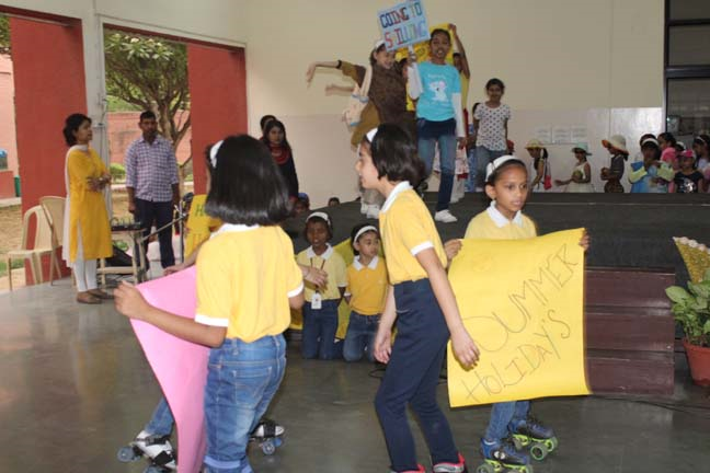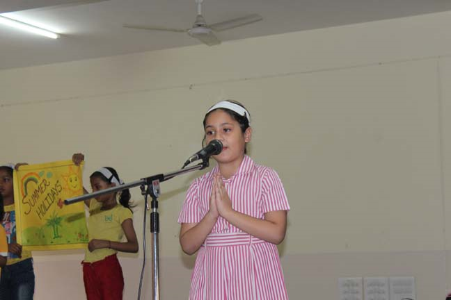 The assembly began with a short prayer in thanksgiving for the last session of school and invoked God’s blessings on everyone during the summer holidays. This was followed by the ‘Holiday Hymn’ sung by the choir and they were joined by all the students of junior school. With the help of a short skit, the students of junior school were informed about the various activities they could take up to make their vacation more enjoyable. Precautions to be taken during summer such as drinking plenty of water and using an umbrella when stepping out in the sun were also shared with the students.
