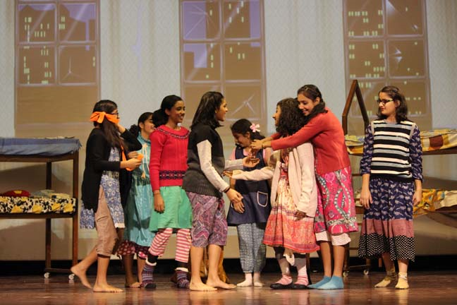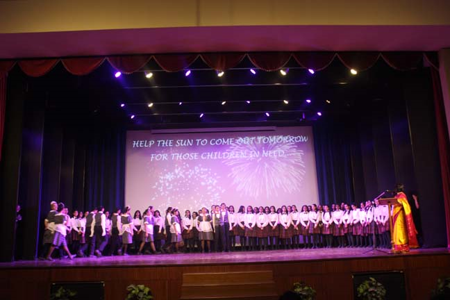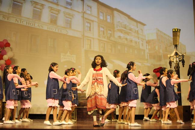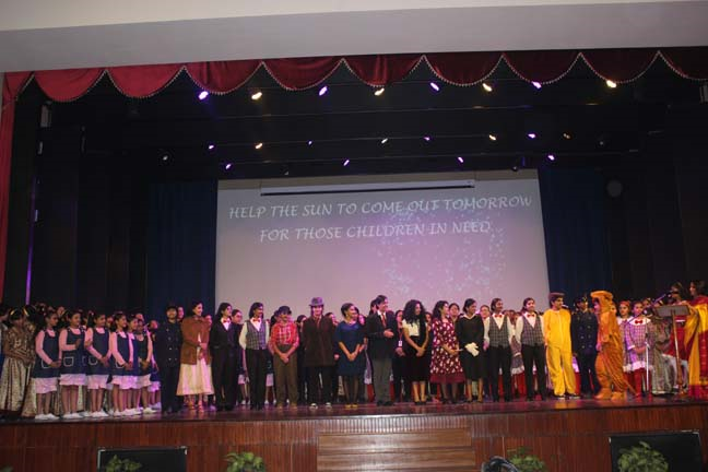 Description: Loreto Convent School, Delhi Cantt held the school concert from 07 to 10 November 13, 2017. This was part of the celebrations of 175 years of Loreto in India. The event began with the students of classes 10 and 12 singing a Welsh Hymn, Calon Lan, on invoking the Almighty for an honest and pure heart. This was followed by the presentation of the musical Annie, who yearns to be reunited with her parents who had left her at the doorstep of an orphanage with a mean matron Miss Hannigan. She runs away from the orphanage repeatedly, because she does not believe that belongs there. When she gets opportunity to stay for Christmas at the mansion of a billionaire, she does get overwhelmed by the wealth and comfort she gets to enjoy, yet stays grounded and still believes that she belongs with her real parents. It is only when the impostors Lily and Rooster enter, that she comes to know that her real parents are no more. She then accepts the billionaire’s proposition to adopt her.