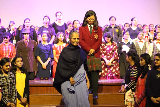 Each of the shows ended with grand finale, wherein all participants were presented on stage. Each of the shows had different guests of honour and chief guests. The classes of section C presented the musical on 07 November for which the students of Mount St. Mary’s School and Presentation Convent were the invitees. The chief guest for this event was Father Arnold of St. Paul’s Church, Delhi Cantt. Section ‘A’ presented on 08 Nov for which the guests of honour were Ms. Aarti Lal, Asst. Director, Directorate of Education, and Mr. Brij Mohan Mudgal, Dy. Director, South West District, Dept. of Education, who represented Ms Saumya Gupta, Director of Education, Delhi Govt., and the chief guest was Rev Bro. Sajji, principal of Mount St. Mary’s School. Section B presented on 09 Nov for which the chief guest was Mr. Alok Gupta, DEO, Delhi Cantt., and the guest of honour was Sister Marion Vase, Superior of Loreto Convent, Ranchi. The special guest for the evening was Sister Christine, principal of Loreto College, Kolkata. Section C presented again on 10 Nov wherein the chief guest was Ms Durga Shakti Nagpal, OSD in the Agriculture Ministry. The guest of honour was Ms. Kaveri Dutt, Director of Loreto Education Board. The special guest for the evening was Sister Cynthia, a Loreto nun from the U.S. Province. The show was appreciated by one and all.