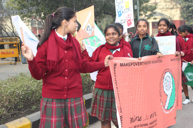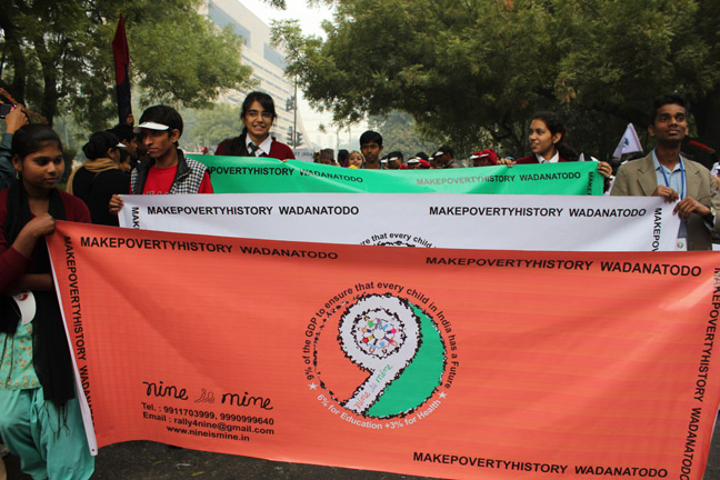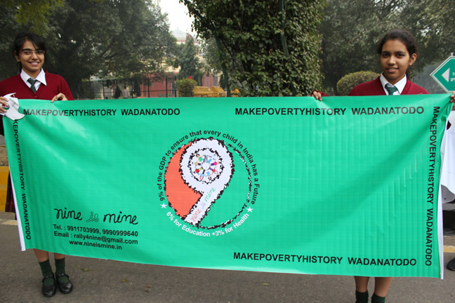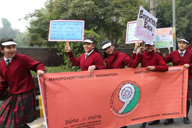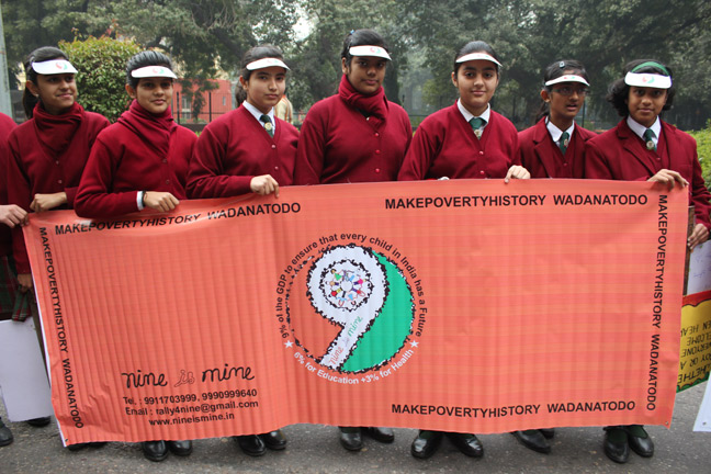 Description: Public day rally was organized by Nine Is Mine. 134 students from class 8,9,10 participated in the rally to remind the govt about the United Nations Millennium Development goals. Students carried posters and banners demanding 6% GDP for education and 3% GDP for health to kept in the forthcoming budget by the government.