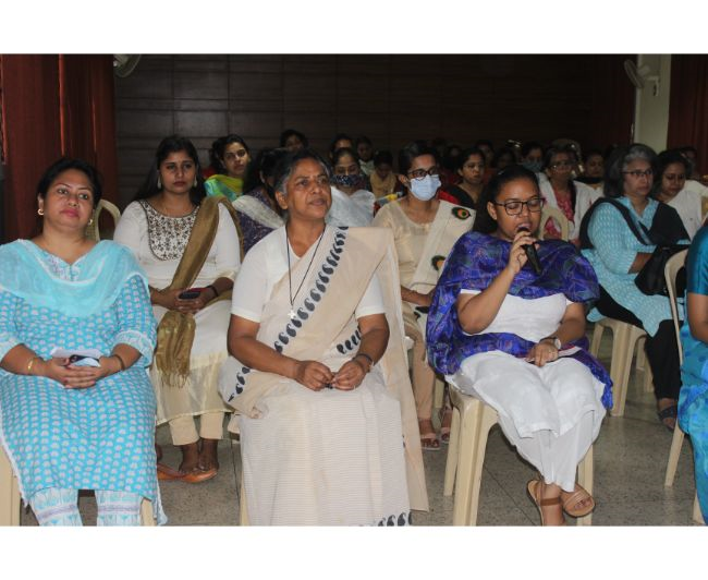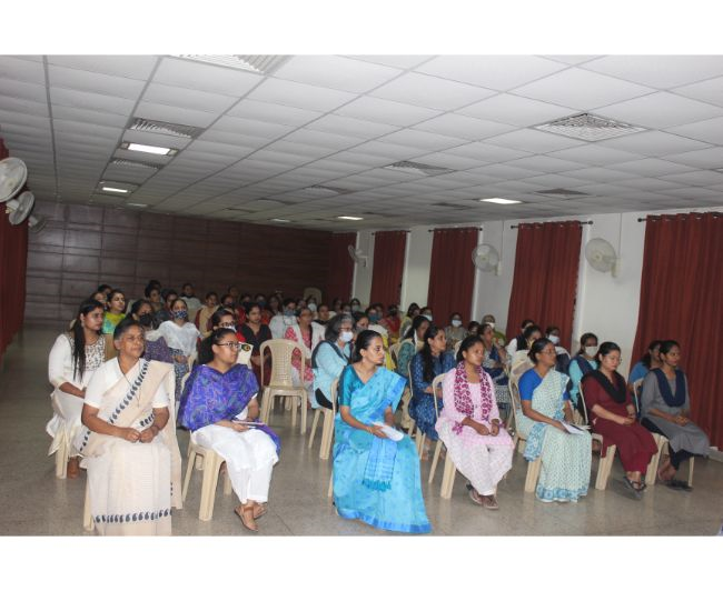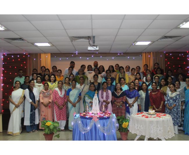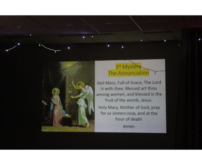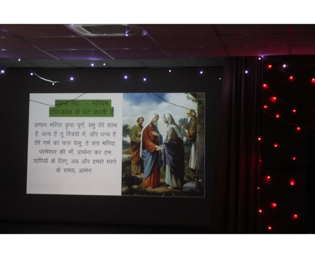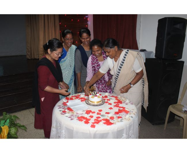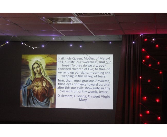 Description: To celebrate the Feast of the Birth of Our Lady, a short prayer service was organized in the Hart Hall on 8 September which consisted of a bilingual Rosary, praying for all the stakeholders of the institution and singing of Marian Hymns. After the Rosary a cake was cut to celebrate the joyous occasion of the Birthday of Mother Mary while the Staff sang Happy Birthday to Mother Mary.