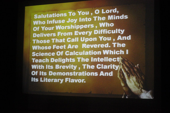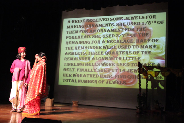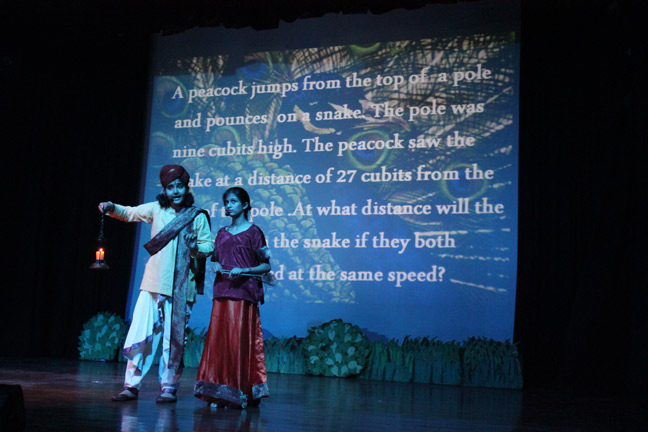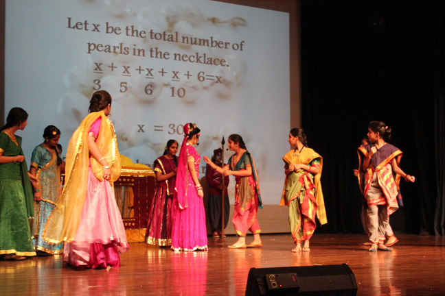The creative adaptation of Bhaskaracharya's Lilavati whichis being presented is the work of every member of the teaching staff & 1053 students! And that is no mean feat! It has taken many hours of creative thinking, planning, practicing & execution for this vast production to be staged. It is indeed a matter of pride for us to bring together parents, students & teachers in this celebration of Mathematics.