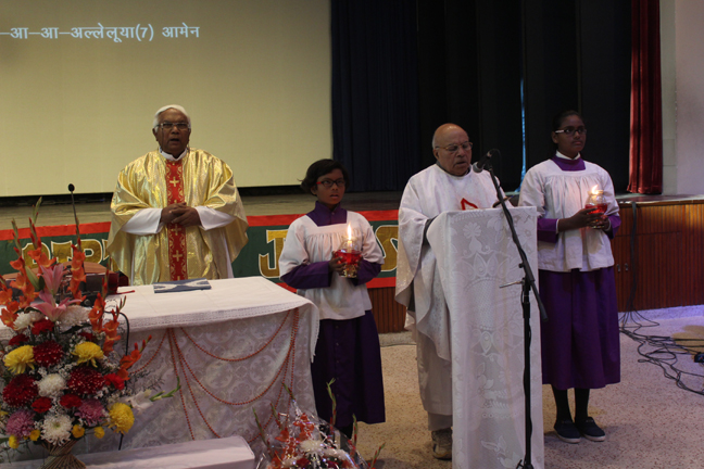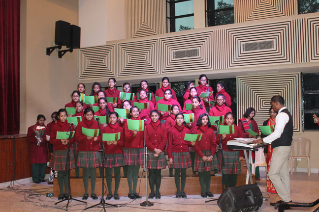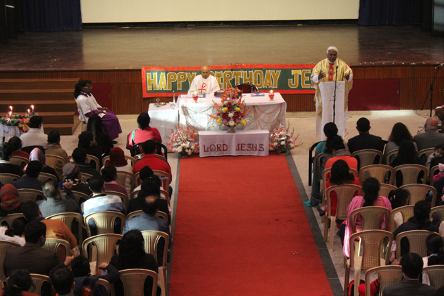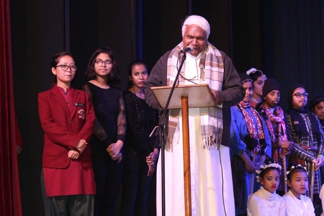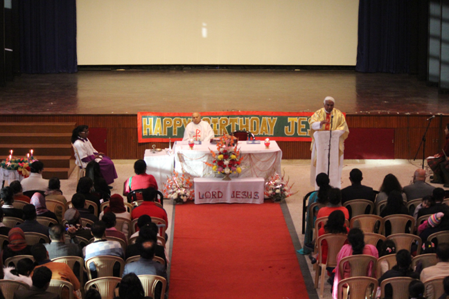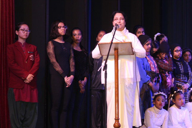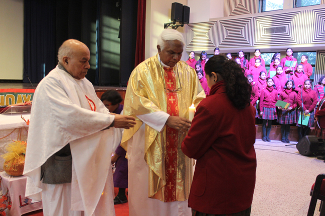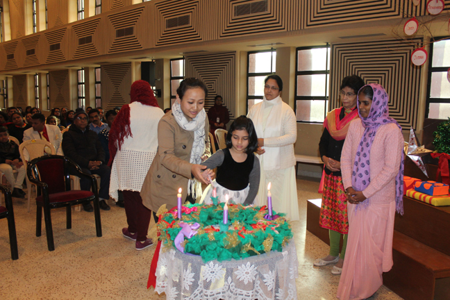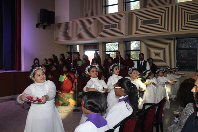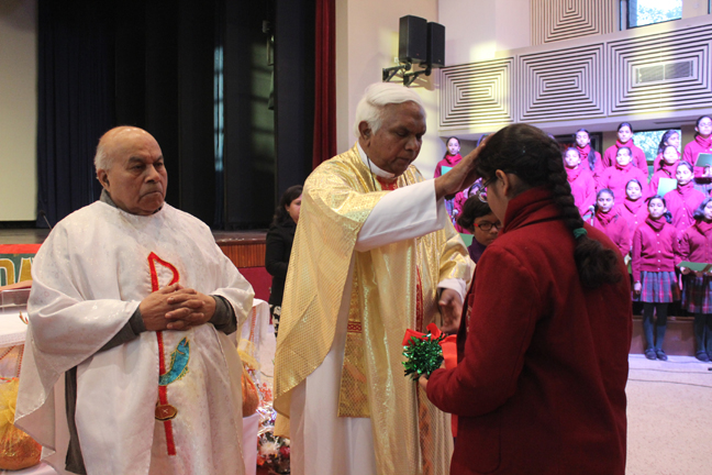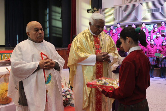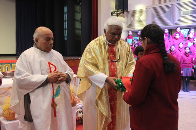 Description: A Christmas programme was held for Christian Parents on 16 December 2017 in the Mary Ward Auditorium at 3.30pm. The programme began with a prayer dance followed by the Advent prayer and lighting of the Advent candles. The Holy Eucharist was celebrated by Monsignor Susai Sebastian, Vicar General and Fr. Arnold, Parish Priest of St. Paul's Church Delhi Cantt..This was followed by the Annual Report of the Catechism Department and the Nativity play .The Vicar General then addressed the gathering while Wing Commander Bart Desousa expressed words of appreciation .The vote of thanks was proposed by the Principal ,Sr. Archana. The Programme ended with refreshments for the guests, parents and children.