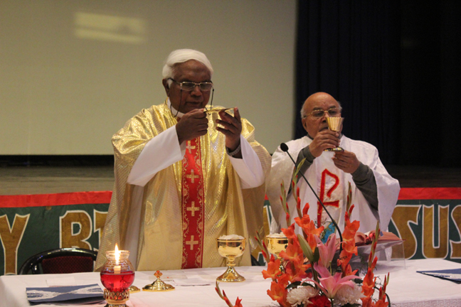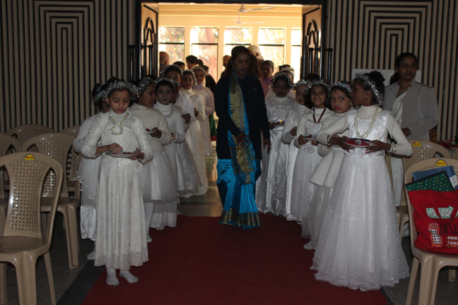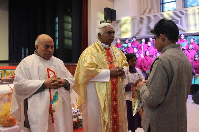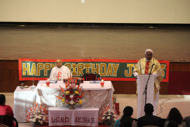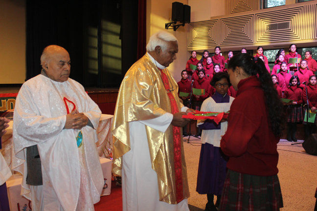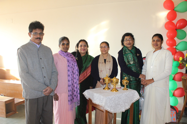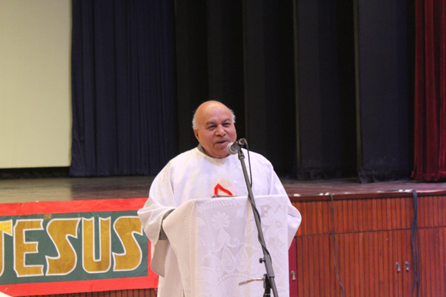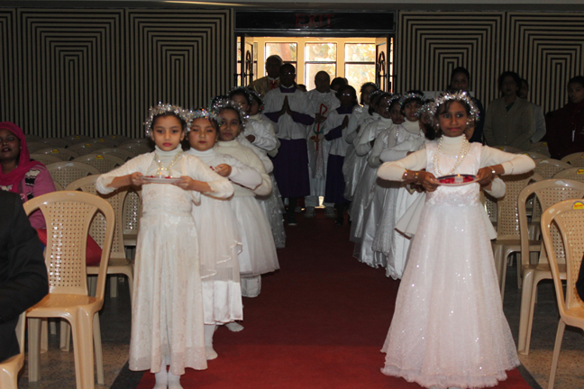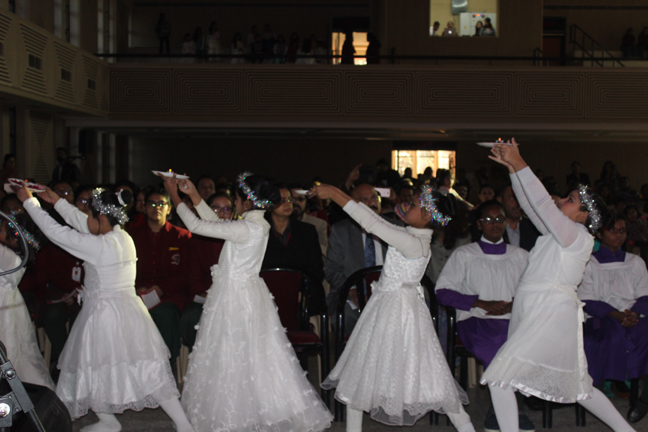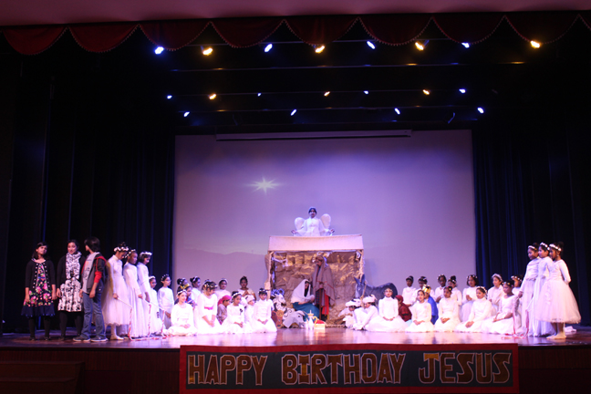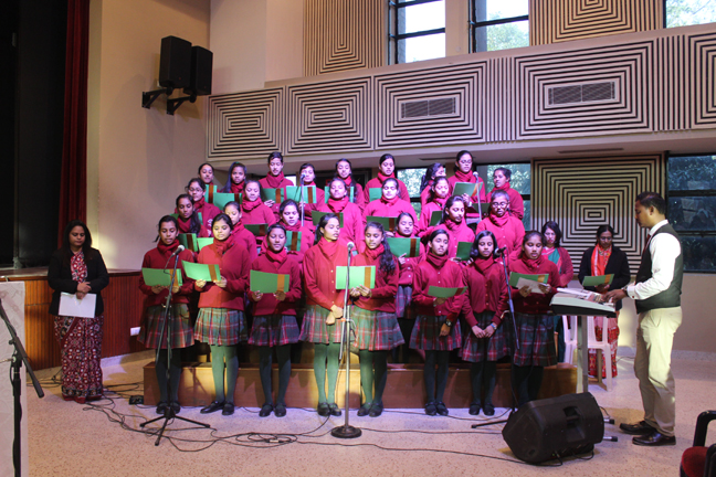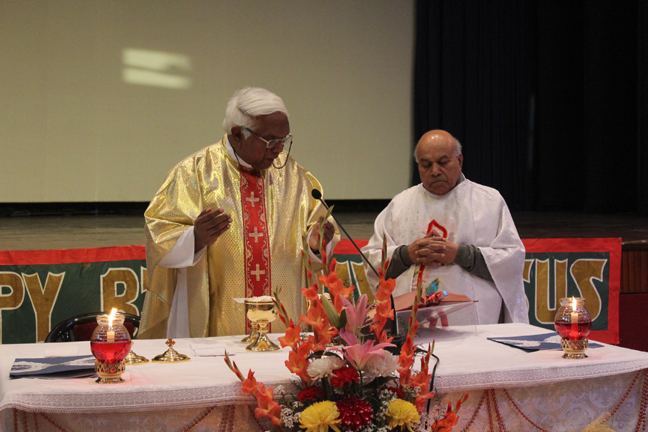 Description: A Christmas programme was held for Christian Parents on 16 December 2017 in the Mary Ward Auditorium at 3.30pm. The programme began with a prayer dance followed by the Advent prayer and lighting of the Advent candles. The Holy Eucharist was celebrated by Monsignor Susai Sebastian, Vicar General and Fr. Arnold, Parish Priest of St. Paul's Church Delhi Cantt..This was followed by the Annual Report of the Catechism Department and the Nativity play .The Vicar General then addressed the gathering while Wing Commander Bart Desousa expressed words of appreciation .The vote of thanks was proposed by the Principal ,Sr. Archana. The Programme ended with refreshments for the guests, parents and children.