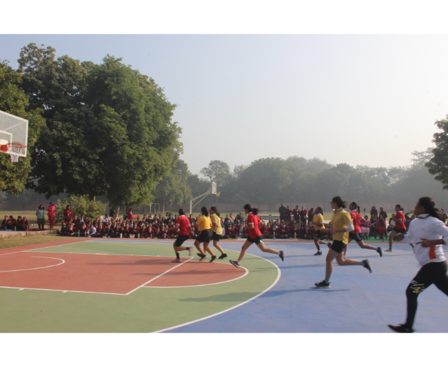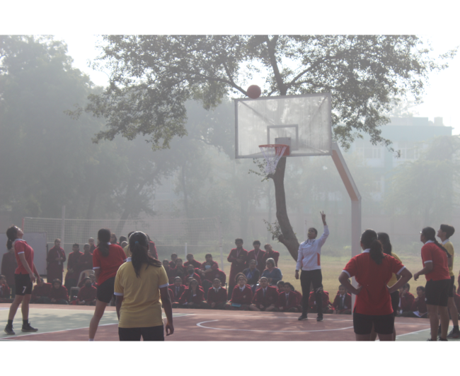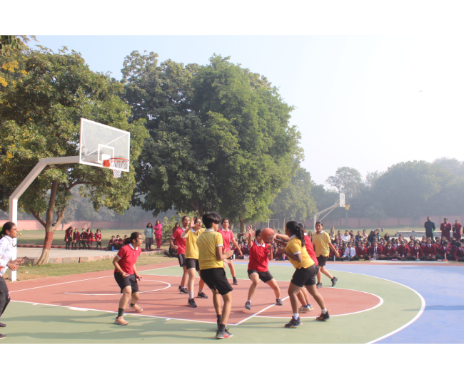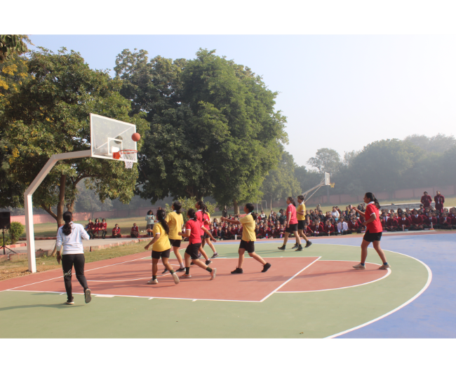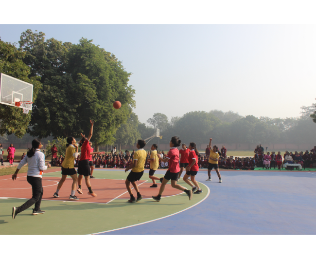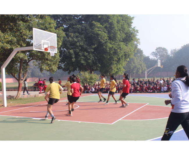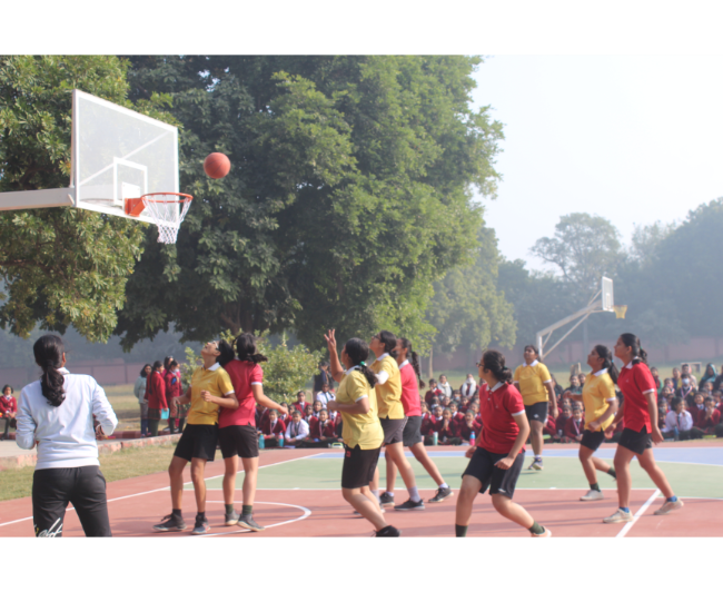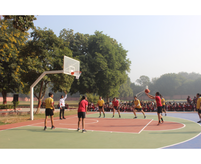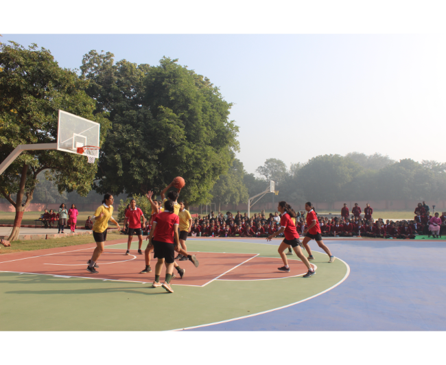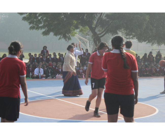 Description: On Thursday, 06 December, Our Principal, Sr Monica Rozario inaugurated the renovated basketball court by cutting the ribbon which was followed by an excited cheer from the students of classes VI-XII. Sr Monica Rozario and the three Coordinators were present as the chief guests for the match. It was a 20-minute inaugural match between two teams, Team A and Team B who wore red and yellow P.E. T-shirts. To add to the excitement buzzing in the audience, the Head Girl invited Sr Monica Rozario to throw the first jump ball to start the game. The newly renovated court was a source of motivation for the players. The game ended with the victory of Team B. The audience clapped their hands to match the beats of the song ‘We will rock you’ while singing along, thus bringing more joy as the game came to an end. The event ended with an inspirational speech by our Principal who applauded the hard work of our P.E. teachers Mrs Aggarwal and Miss Yashika and encouraged the players to participate in sports.