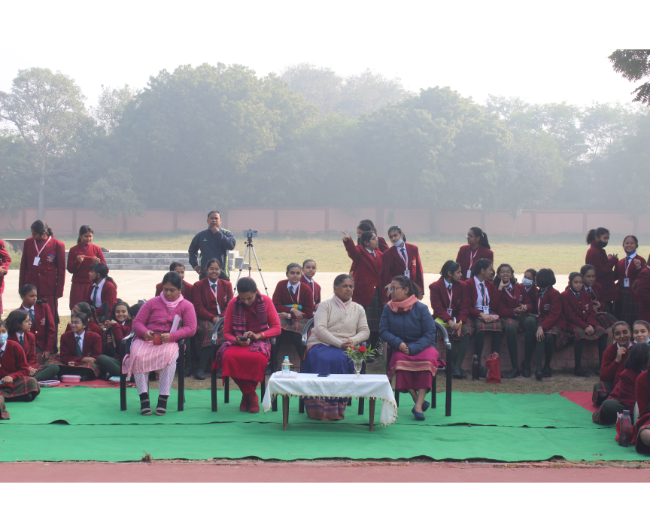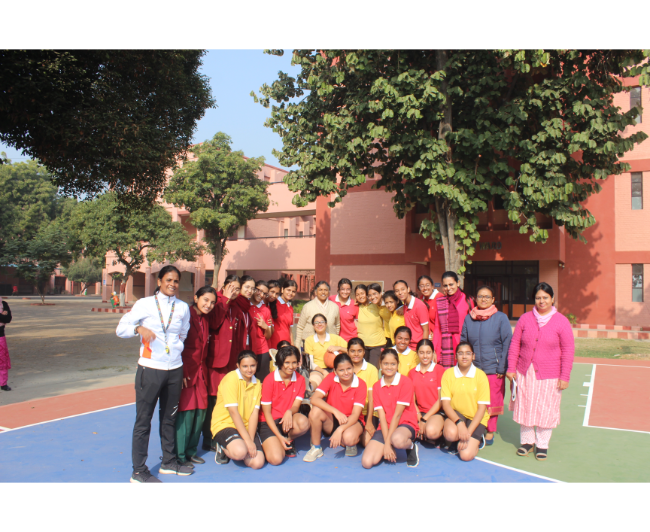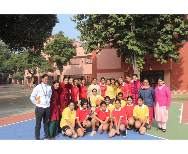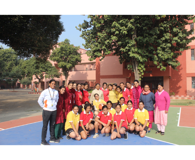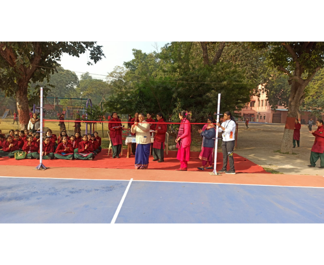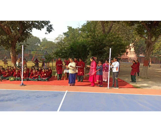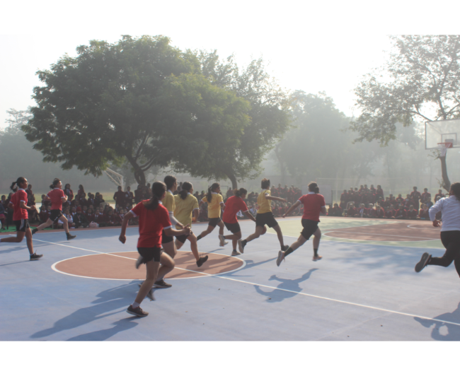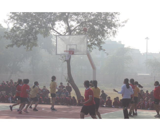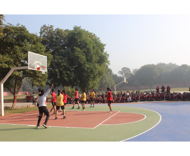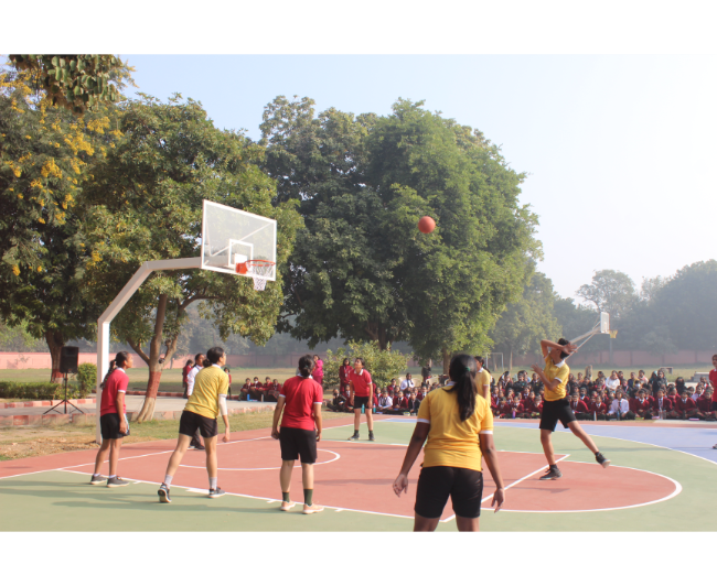 Description: On Thursday, 06 December, Our Principal, Sr Monica Rozario inaugurated the renovated basketball court by cutting the ribbon which was followed by an excited cheer from the students of classes VI-XII. Sr Monica Rozario and the three Coordinators were present as the chief guests for the match. It was a 20-minute inaugural match between two teams, Team A and Team B who wore red and yellow P.E. T-shirts. To add to the excitement buzzing in the audience, the Head Girl invited Sr Monica Rozario to throw the first jump ball to start the game. The newly renovated court was a source of motivation for the players. The game ended with the victory of Team B. The audience clapped their hands to match the beats of the song ‘We will rock you’ while singing along, thus bringing more joy as the game came to an end. The event ended with an inspirational speech by our Principal who applauded the hard work of our P.E. teachers Mrs Aggarwal and Miss Yashika and encouraged the players to participate in sports.
