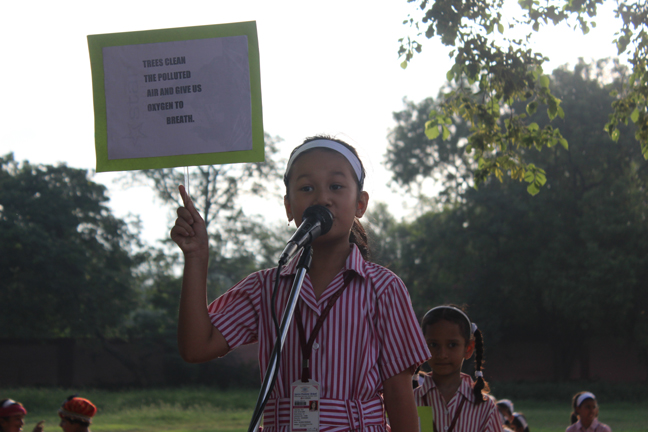Description: This special assembly was conducted by the students of class 3rd as part of the ongoing environment week. The students spoke about the importance of tree, the chipko movement and Van Mahotsav initiated by the government of India to involve the citizens in keeping the nation clean and green.