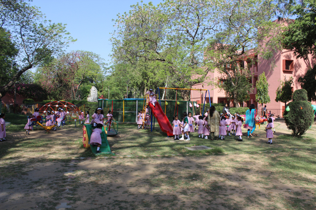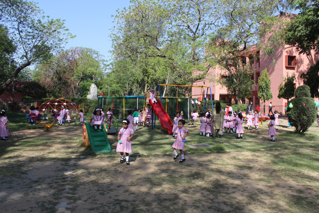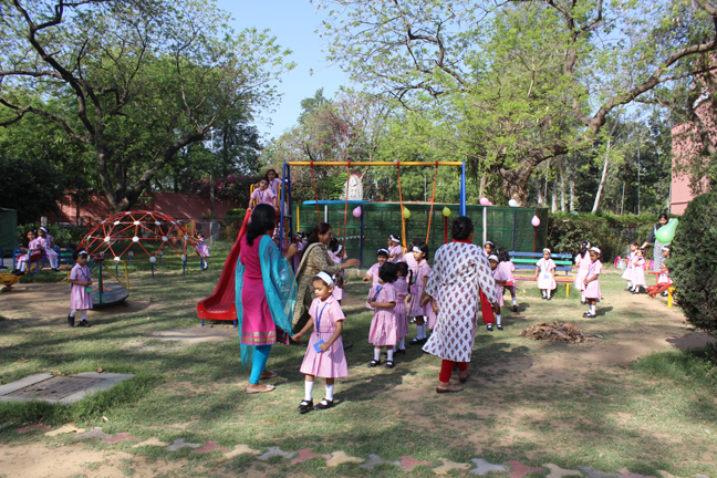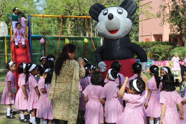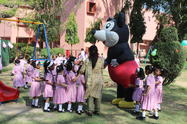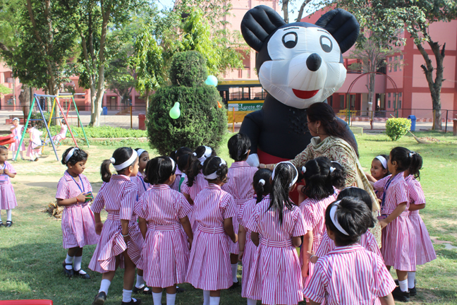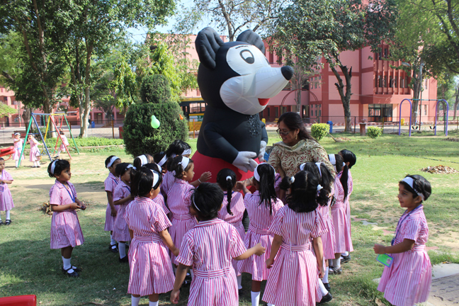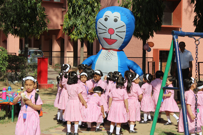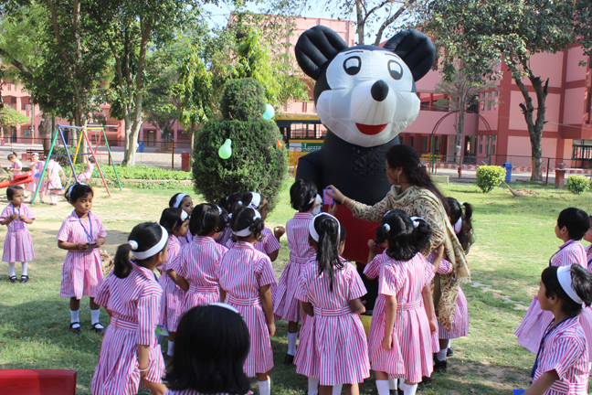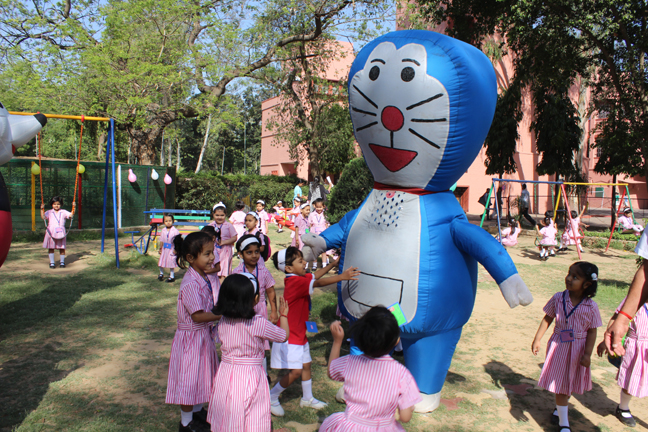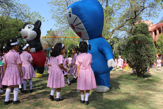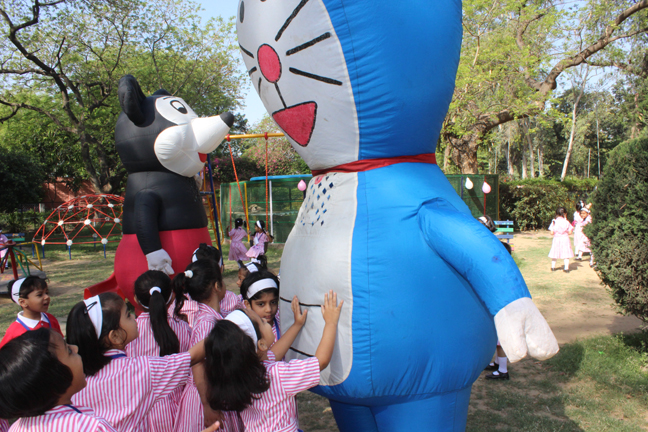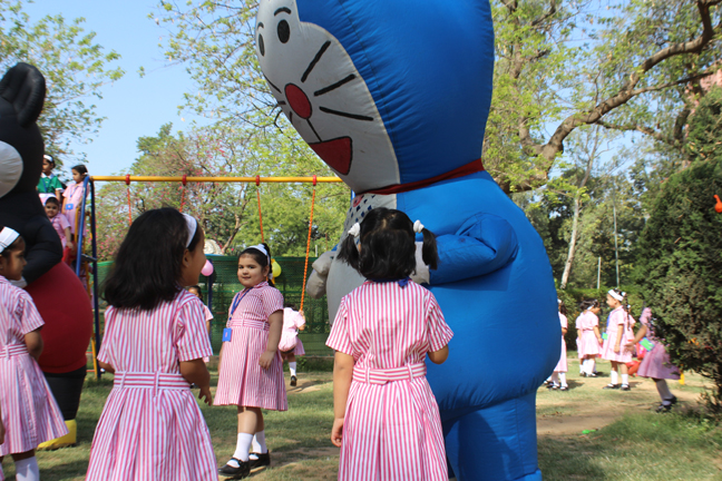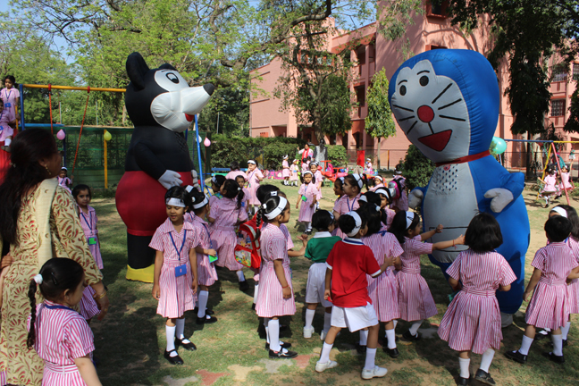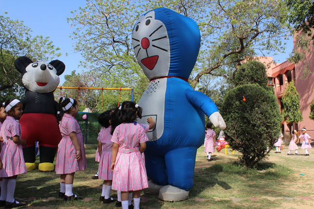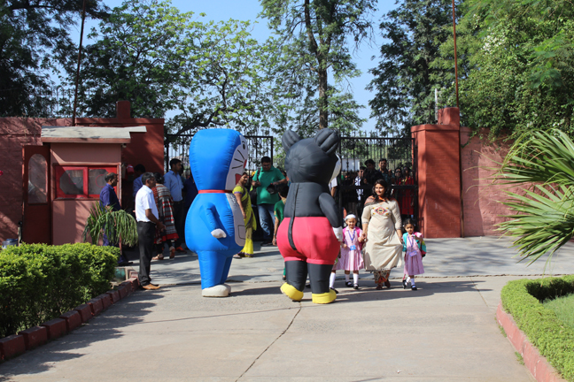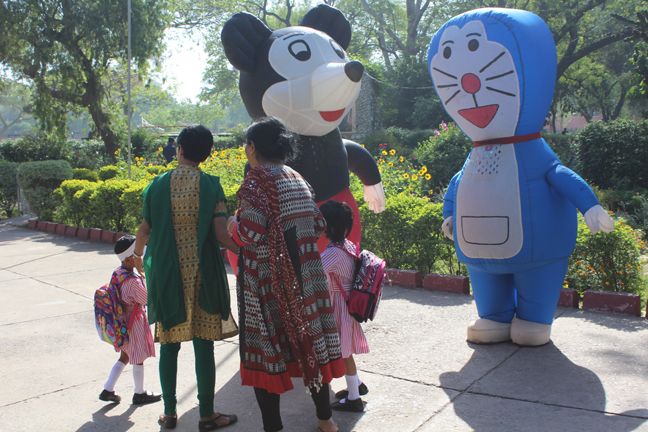 school. The children danced, clapped, shook hands and said, ”Hello” to Doremon and Mickey Mouse.