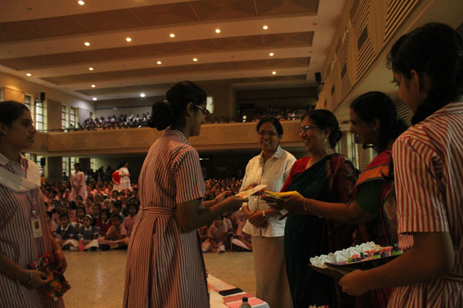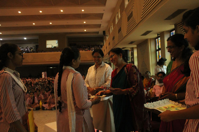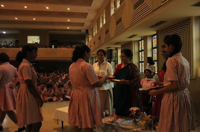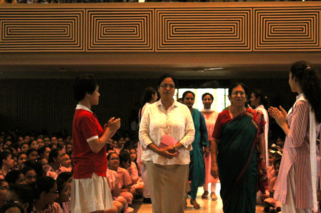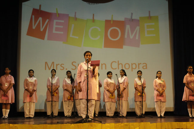 The faculty and the student accorded a warm welcome to Mrs Chopra as she was escorted by the Principal Sister Archana and our coordinators.