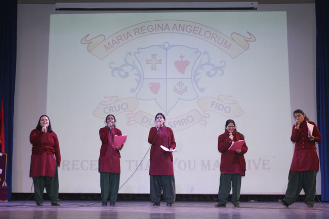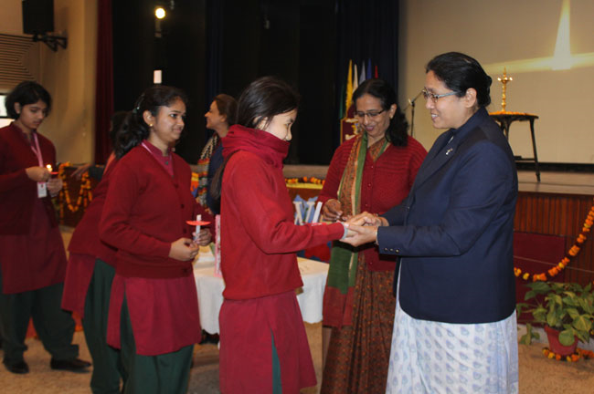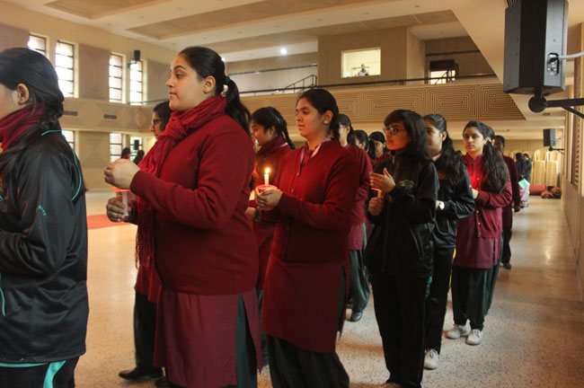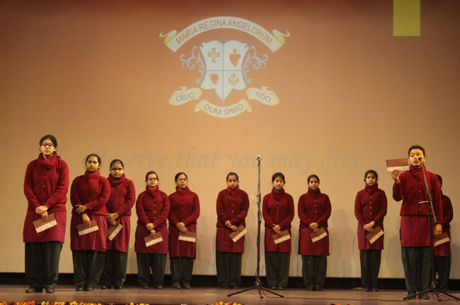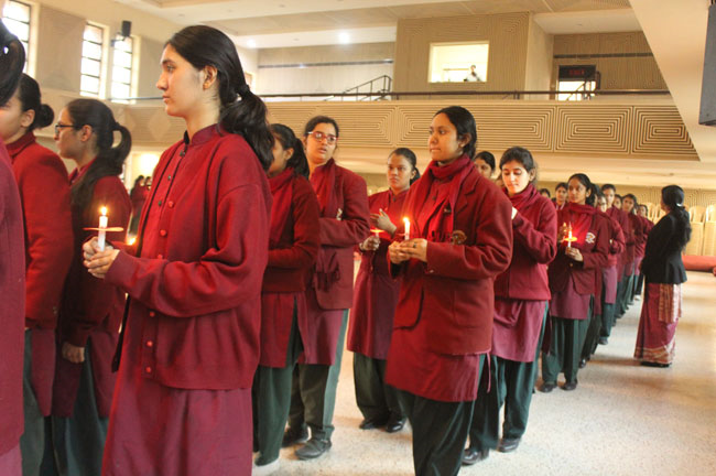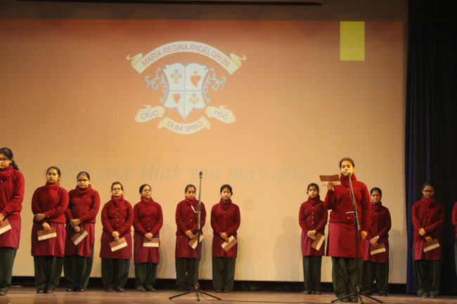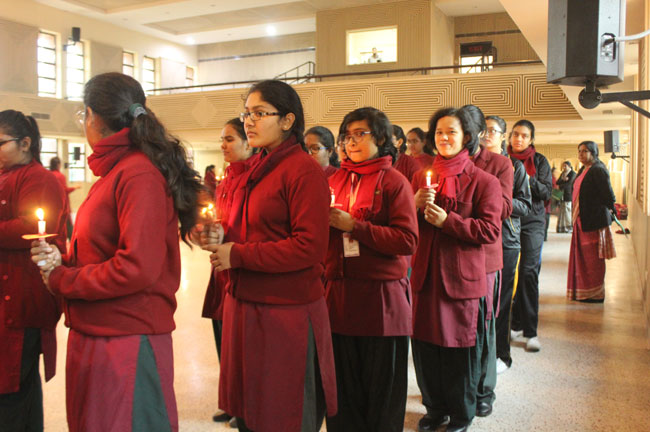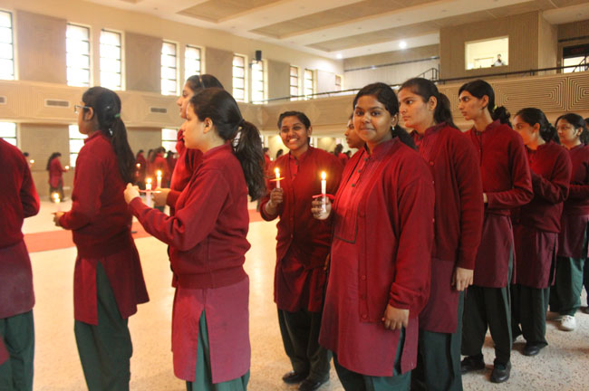 The students of class XI and XII reassembled for the Candle Light Ceremony in the Mary Ward Auditorium. Sr. Antoinette, Sr. Archana and the faculty members conducted a prayer assembly and acquainted them with essential values enumerated in the scriptures which would hold them in good stead for the rest of their lives.