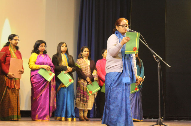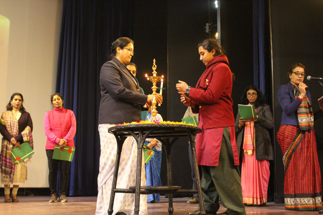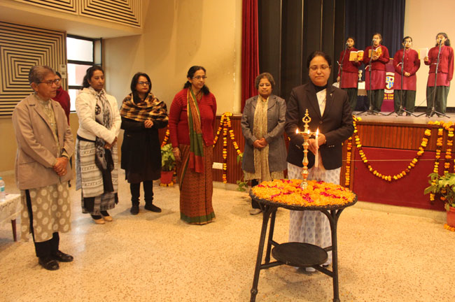 Taking forward the theme of the train journey, the students of Class XII were bid adieu in a Farewell Socialon 2 February by the students of Class XI.. The school quadrangle bore a festive look decorated with photo booths, balloons and the banner that proclaimed ‘Hasta La Vista’ , Spanish for ‘ Goodbye’. A cake cutting ceremony by Sr. Archana, the Head Girl, Sports Captain and the House Captains set the ball rolling on the celebrations. The young ladies elegantly draped in their vibrant multi-hued sarees were taken down the nostalgic memory lane with enactments depicting their school days. The band and dance performances and the games and questions on the fun trivia about the school kept the audience thoroughly engaged. The sumptuous lunch was the perfect finale to a great celebration.