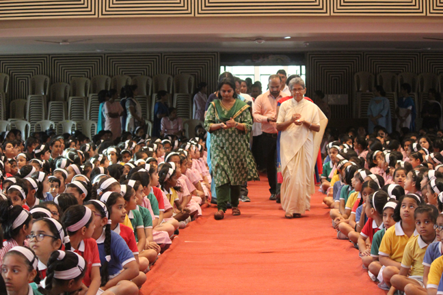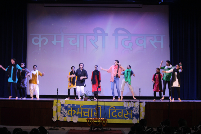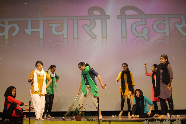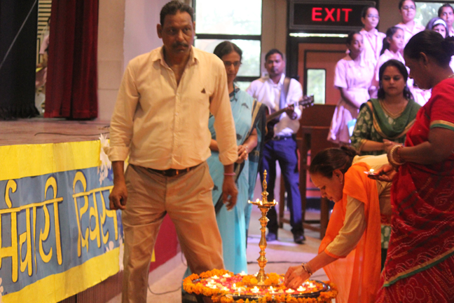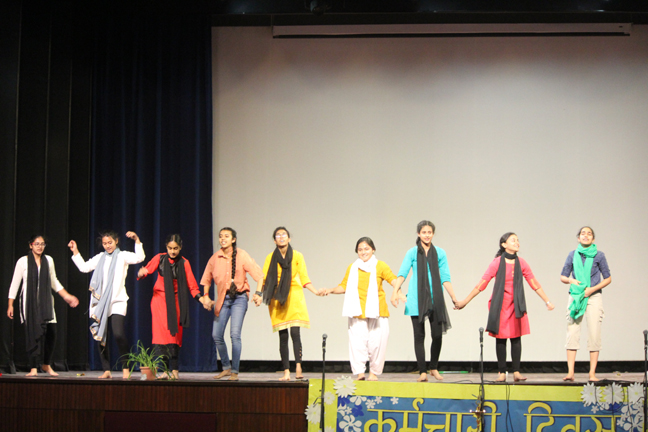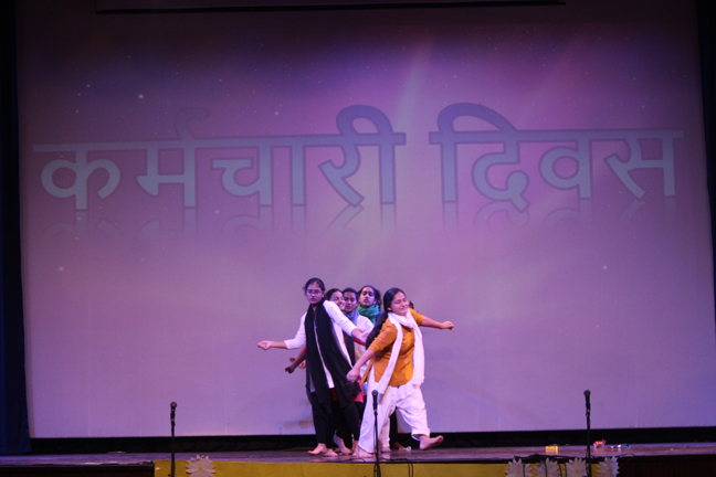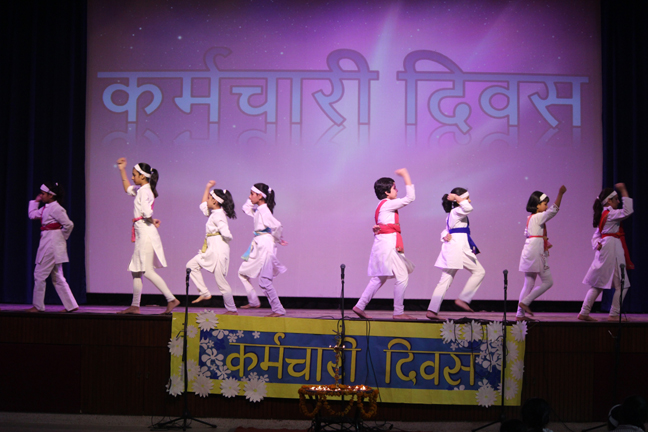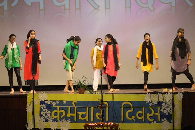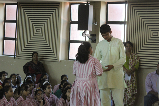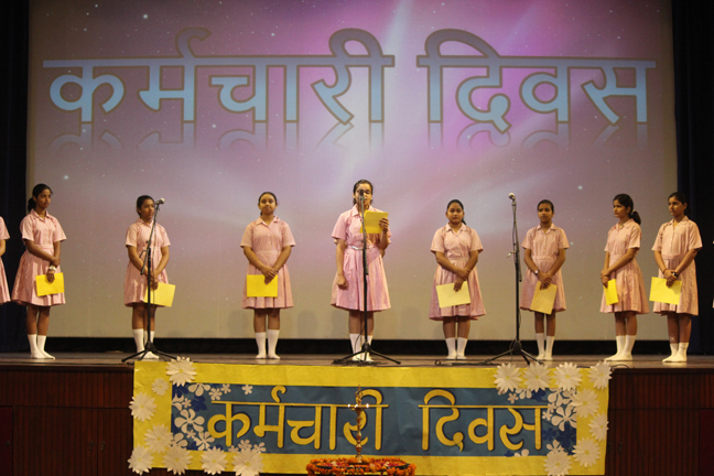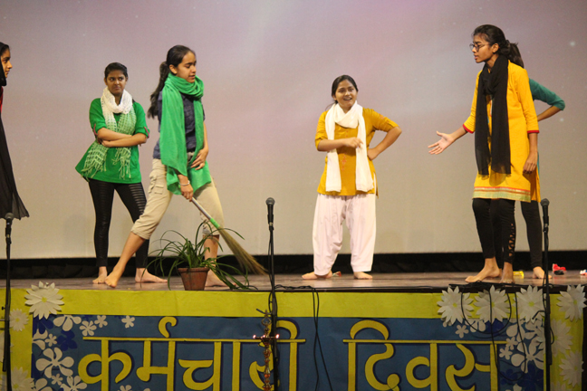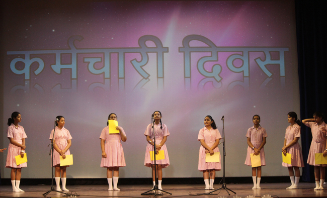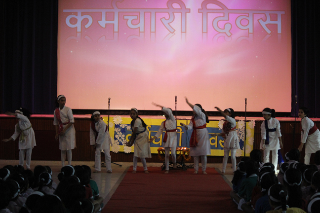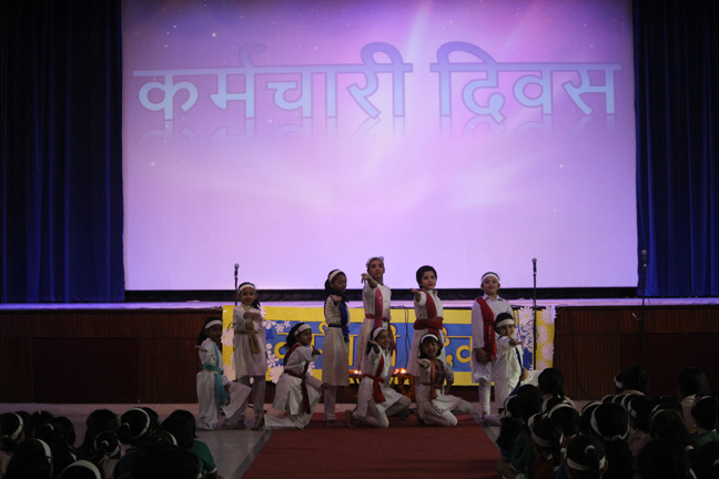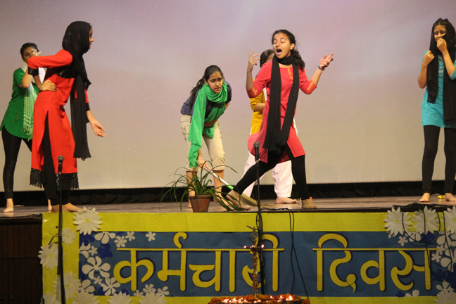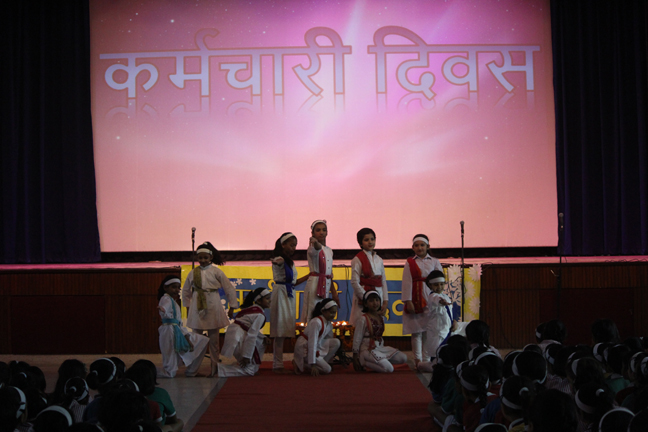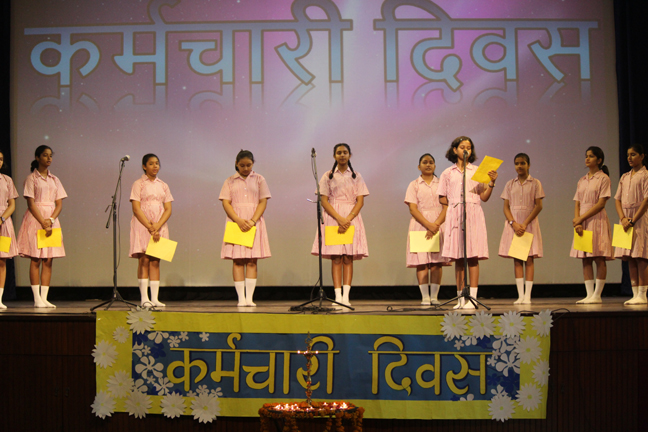 Description: On the occasion of International Labour Day, the LTS club organized the celebrations of SUPPORT STAFF DAY on 01 May, 2018 in honour of the service of all the members of the domestic staff at Loreto Convent School, Delhi. The members of the domestic staff entered the auditorium in a procession led by Sr. Antoinette and the coordinators. The celebrations started on a solemn note with a meaningful prayer service in Hindi. The junior school presented a dance, followed by a street play on the importance of cleanliness. The Music Society too presented a medley of popular Hindi numbers. This was followed by presentation of cards made by the students. Games such as musical chairs, lemon and spoon race and balloon race were conducted by the students. This was appreciated by all the students and staff gathered. Thereafter, a message by Sr. Antoinette was translated into Hindi and read out by the LTS animator, Mrs. Sood, focusing on the need to appreciate the service of the support staff, and that they are the foundation of this institution. They are a part of the Loreto family and that we would be incomplete without them. The final vote of thanks was given by Mr. Lawrence who thanked the students and the staff of Loreto for organizing the event and urged the students to study well. Followed by this, refreshments were served in the Activity Hall where a movie, Hindi Medium’ was shown.