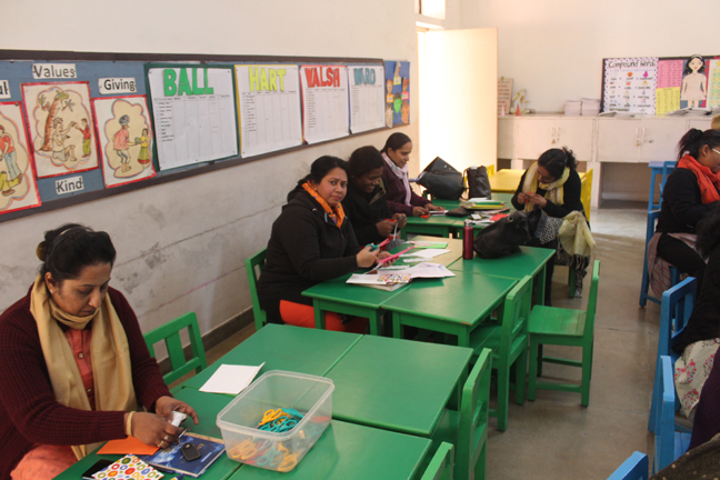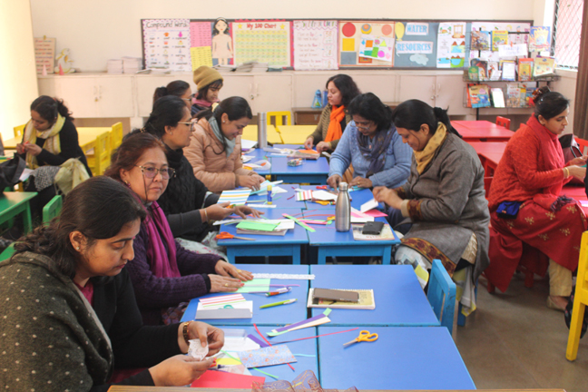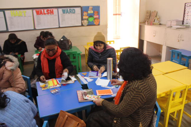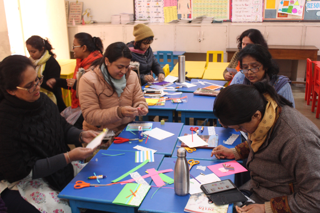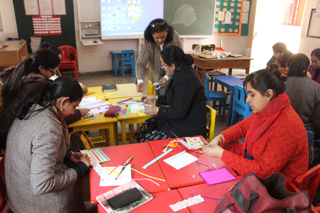 Description: A workshop for primary teachers was conducted on 29th January 2020 on ‘Craft and handmade card making’: by a resource person Mrs Collinson who is also a parent of our school. The aim of organizing the event was to explore the hidden creativity of the primary teachers and make them learn the use of arts and crafts in teaching- learning processes. The teachers took part enthusiastically and made beautiful handmade cards using their creativity