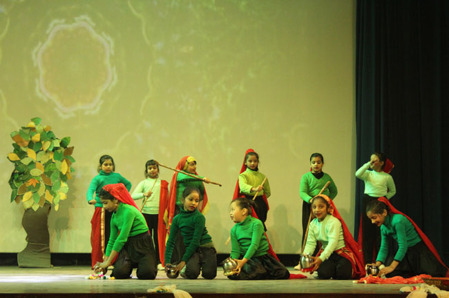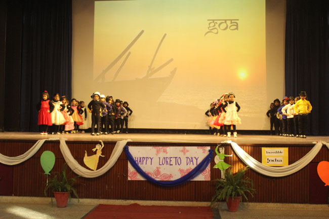 Description: On 30th January 2019 Loreto Day way observed in our school. The students of junior school from classes prep to 3 presented a cultural extravaganza during the display of folk dances of different states in the Mary Ward auditorium. The preps mesmerized the audience with their lively rendition of the Goan folk culture while the students of classes one, two and three danced to the folk numbers of Uttrakhand, Arunachal Pradesh and the colourful state of Gujarat. A collection of traditional classical dances of India was also performed by the students of classes 4 and 5. They enthralled the audience with their beautiful dances and gave a glimpse of the vibrancy of Indian culture prevalent in its different states.