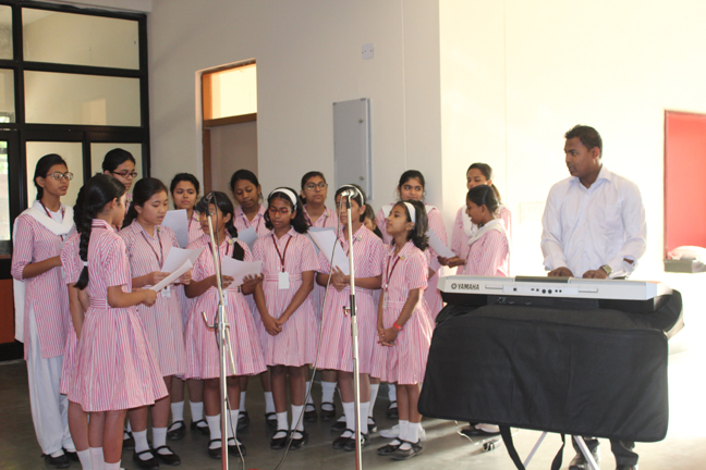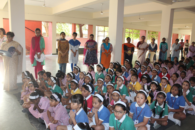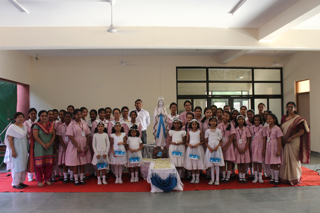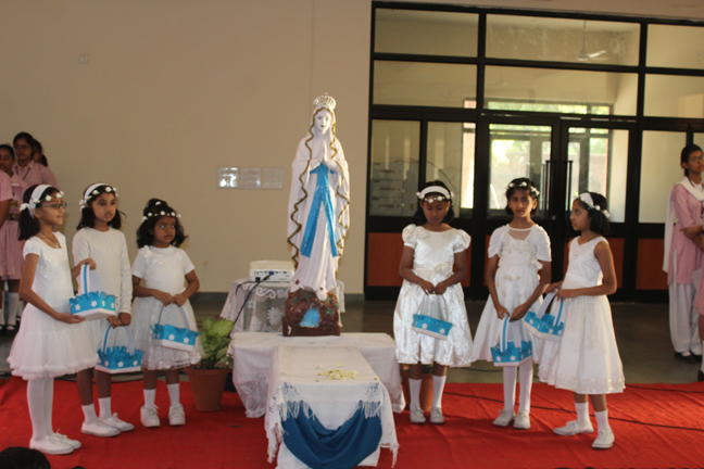 The prayer service of 'Crowning of our Lady' was conducted by YCS on 2 May 2016 in the Open Hall. All christian teachers and students attended the devotional service which included a reading from the Holy Bible, intercessory prayers, Marian hymns and meditation while reciting the decade of rosary. Zoya jaffrey, Head Girl crowned the statue of Blessed Mother and the students of class 4 offered a floral tribute. Mrs. Mathew gave a short discourse on Mother Mary. Sr. Mercia, the Principal acknowledged the effort of YCS animators Mrs. Mathew, Mrs D'lima, Mrs. Jacob and Mr. Ashish for organising the prayer service.