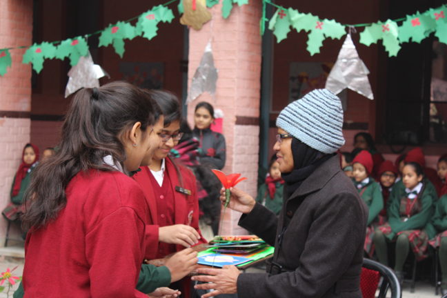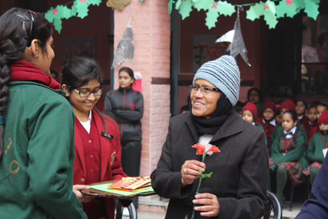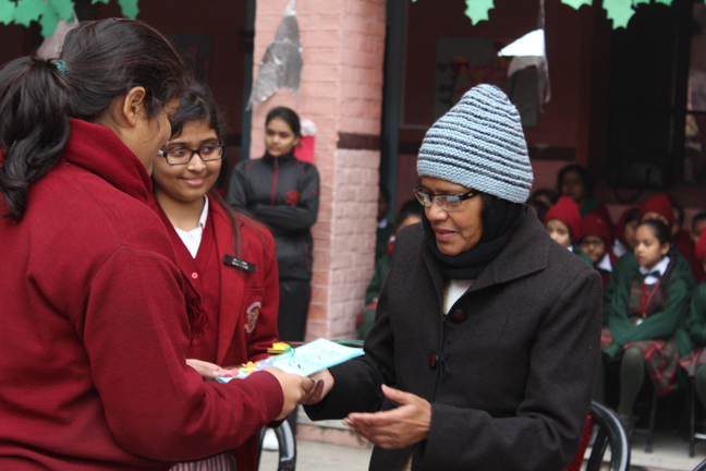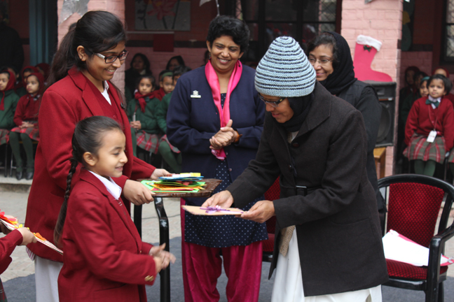Description: Sr. Antoinette Rodrigues proceeded on superannuation to Kolkata on completion of her tenure as the Principal of Loreto Convent School, Delhi Cantt. The students bid her a fond farewell with cards and flowers in a special assembly hosted in her honour.