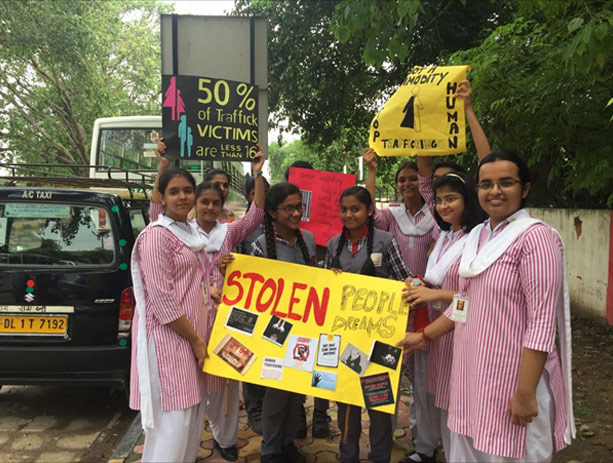 The World Day against Trafficking in Persons was observed by staff and students of Loreto Convent, Delhi on July 30, 2018. A special assembly was conducted to sensitise students about the victims of human trafficking and the steps being taken to protect the rights of such persons. Students prepared posters to conscientise the public about this violation of basic human rights. They interacted with students of the neighbouring schools and people on the streets to raise awareness about this crime against people especially women and children.