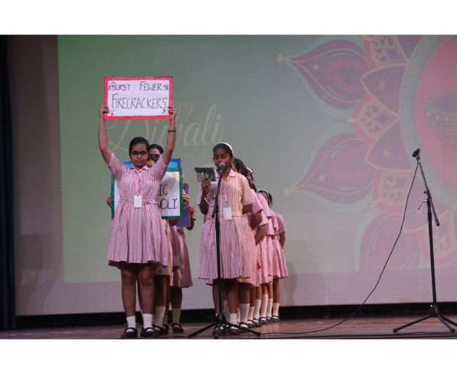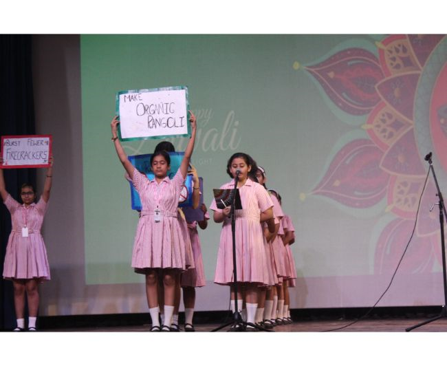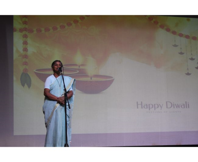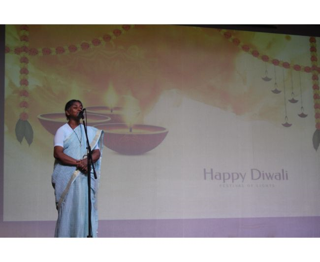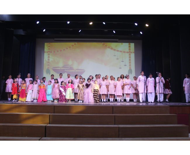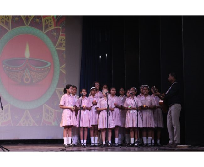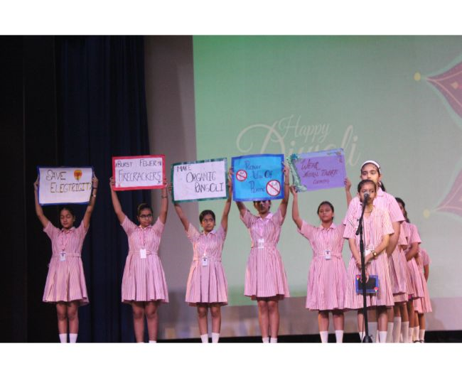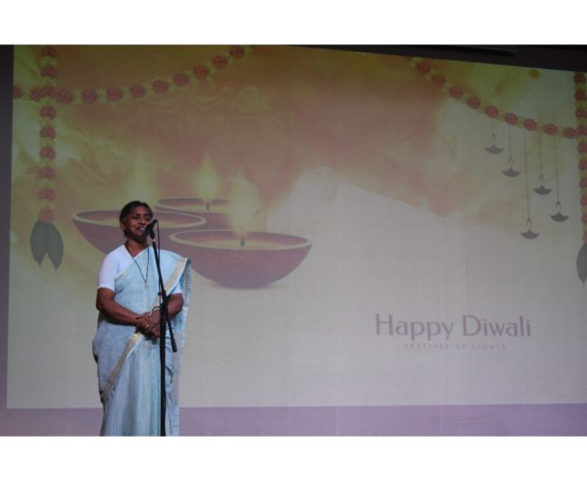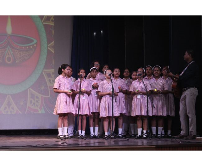 Description: The LTS club organized the celebrations of SUPPORT STAFF DAY on 17 October, 2017 in honour of the service of all the members of the domestic staff at Loreto Convent School, Delhi. The celebrations started on a solemn note with a meaningful prayer service. The ceremonial lamp was lit by the principal, Sr. Archana Gomes, and all members of the domestic staff. This was followed by presentation of cards made by the students of the junior school and the senior and middle school. Thereafter, the junior school choir presented a medley of songs with personalised and fun-filled lyrics dedicated to each member of the domestic staff. This was followed by a skit on the importance of being focused on one’s work and to avoid distractions. The students of senior presented a dance on the need to save rivers, the lifeline of our existence. This was appreciated by all the students and staff gathered. After, the principal addressed the students on the need to appreciate the service of the support staff, she extended greetings for Diwali. The final vote of thanks was given by Mr. Rajesh who urged the students to study well and celebrate Diwali with lights and not fireworks. A movie, ‘Uphaar’ was shown to the Support Staff, simultaneously to the students in their respective classrooms.