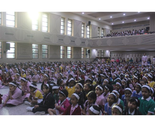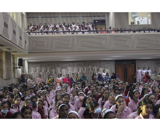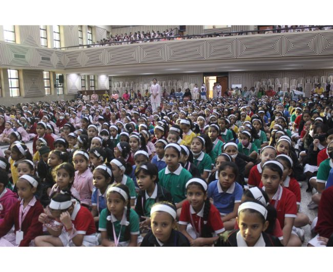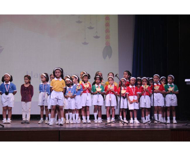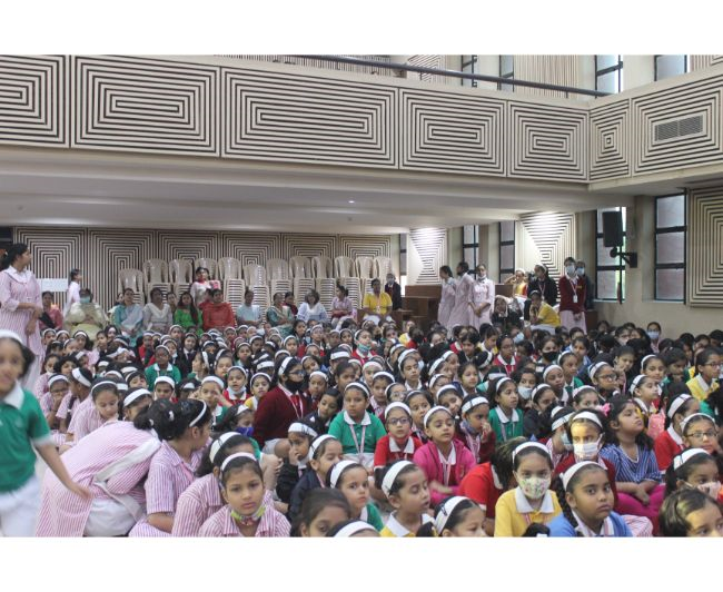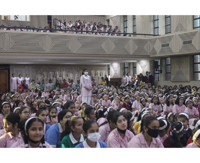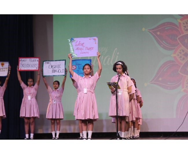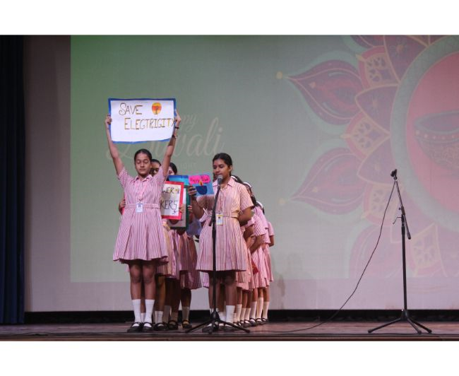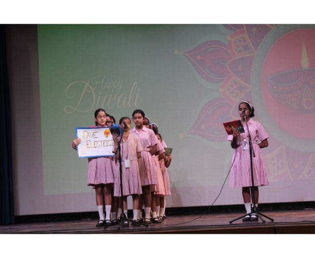 Description: The LTS club organized the celebrations of SUPPORT STAFF DAY on 17 October, 2017 in honour of the service of all the members of the domestic staff at Loreto Convent School, Delhi. The celebrations started on a solemn note with a meaningful prayer service. The ceremonial lamp was lit by the principal, Sr. Archana Gomes, and all members of the domestic staff. This was followed by presentation of cards made by the students of the junior school and the senior and middle school. Thereafter, the junior school choir presented a medley of songs with personalised and fun-filled lyrics dedicated to each member of the domestic staff. This was followed by a skit on the importance of being focused on one’s work and to avoid distractions. The students of senior presented a dance on the need to save rivers, the lifeline of our existence. This was appreciated by all the students and staff gathered. After, the principal addressed the students on the need to appreciate the service of the support staff, she extended greetings for Diwali. The final vote of thanks was given by Mr. Rajesh who urged the students to study well and celebrate Diwali with lights and not fireworks. A movie, ‘Uphaar’ was shown to the Support Staff, simultaneously to the students in their respective classrooms.