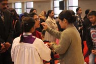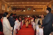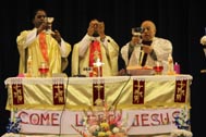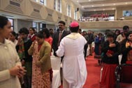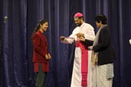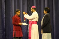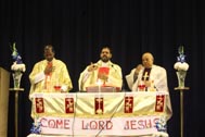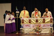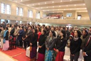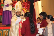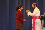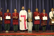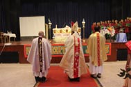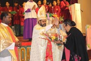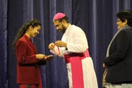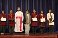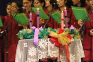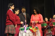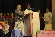The programme began with the Blessing of the Mary Ward Auditorium by His Grace Bishop Theodore Mascarenhas and Fr Arnold, Parish Priest of St. Paul’s Church, Delhi Cantt. Prior to the Holy Eucharist which was organized by Class 12 students and celebrated by His Grace Bishop Theodore Mascarenhas, Fr A.David, Secretary to the Bishop and Fr.Arnold David,Parish Priest of St.Paul’s Church , the students performed a tribal dance and a family was invited by Mrs. M Domingo to light the Advent Wreath Candles.