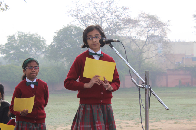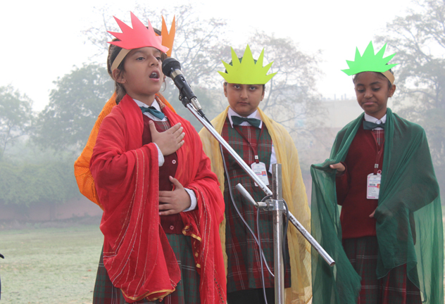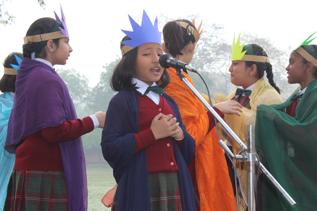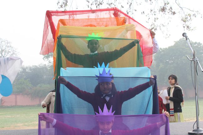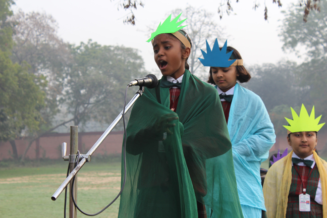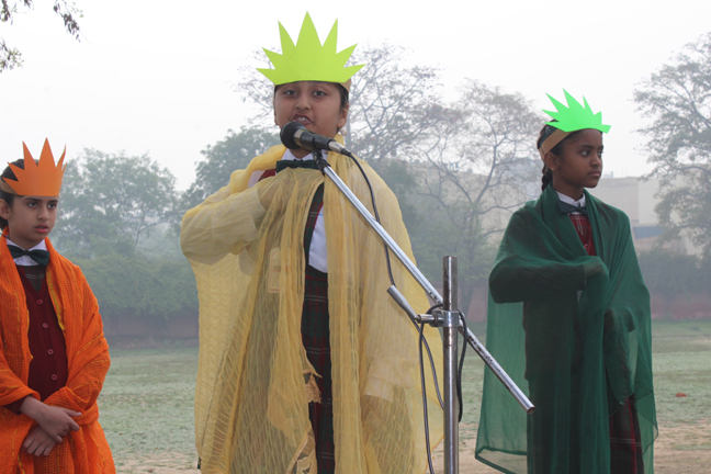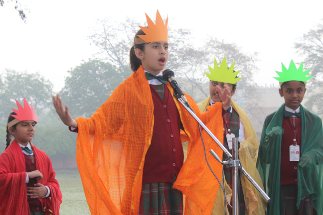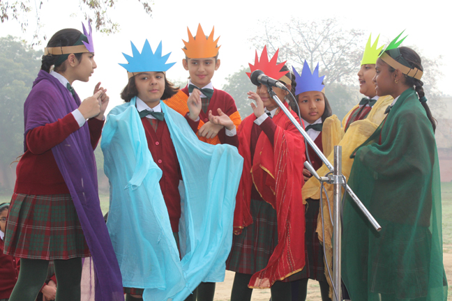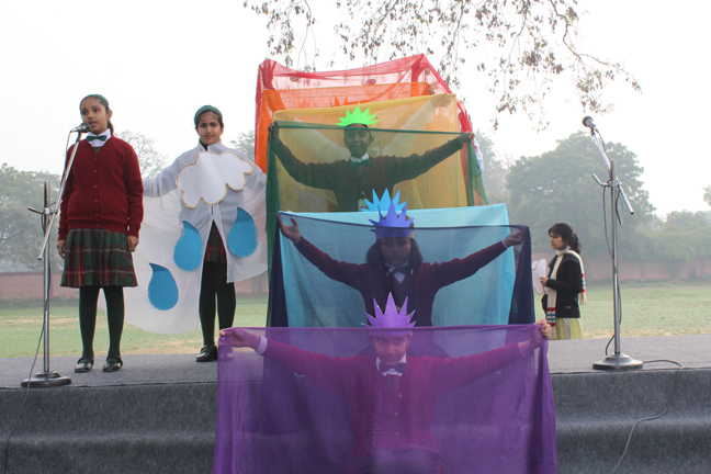 Description: On the 13th of March 2015 the Students of class IV conducted their final assembly based on the theme of ‘being unique’. The children represented the colours of the rainbow and through a short skit they effectively brought out the message that each person is unique and that we should live in harmony. This was followed by the prize distribution ceremony for junior school. The best class of junior school and the best house of junior school for the last academic year were declared.